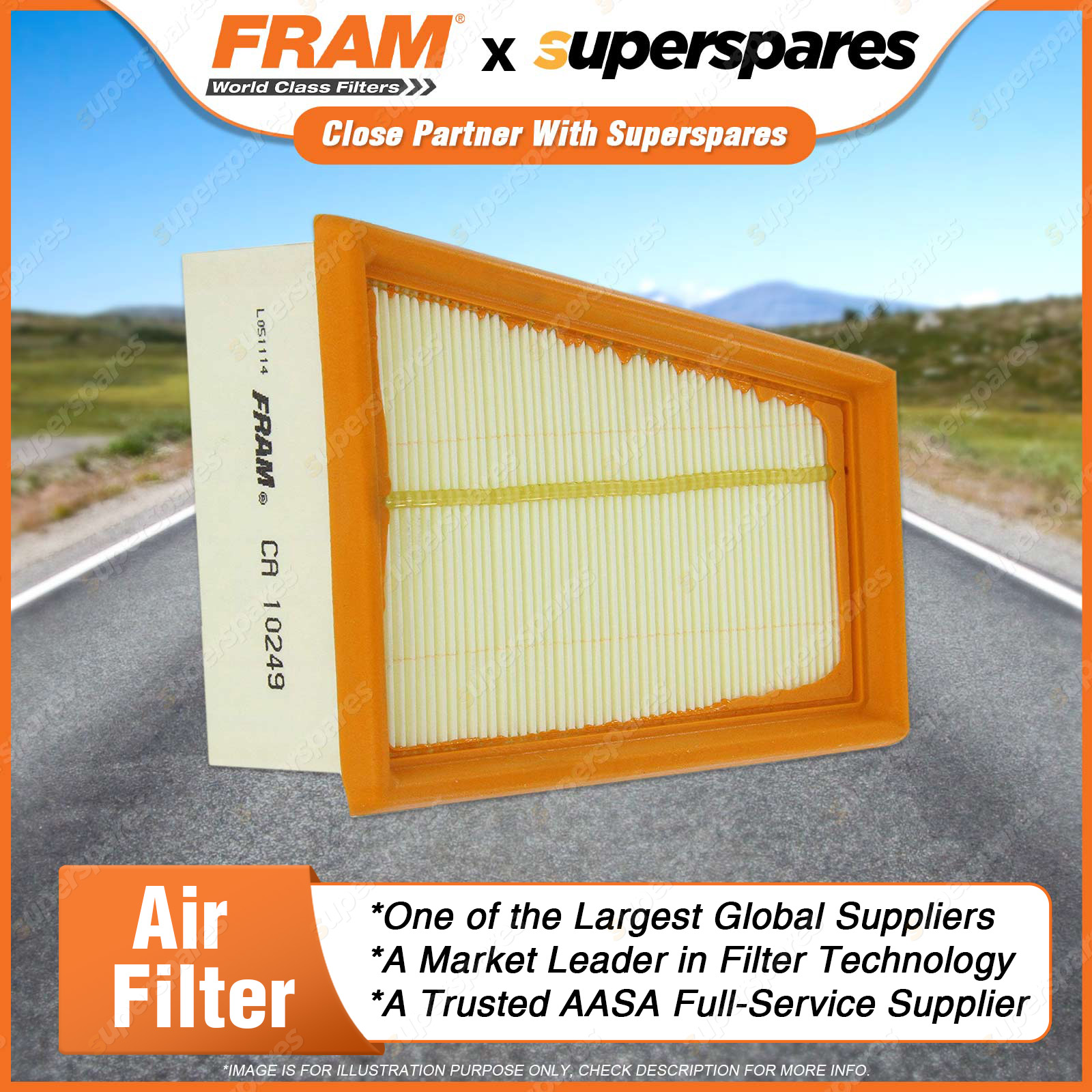 Air mixes with fuel before entering the combustion chamber and any dirt in the air will damage the combustion chamber and pistons.Air filters remove contaminants from the air entering the engine, thus protecting the combustion chamber from the damaging effects of airborne dirt. Features & Benefits: A FRAM air filter will ensure optimum engine combustion by creating the ideal balance in air/fuel mixture. FRAM Air filters improve the air flow in the engine and allow for better engine performance and superior fuel economy. FRAM air filters contain fine media paper to ensure that all sizes of dirt is collected and removed from the air entering the engine. Correct fineness and pleat geometry provides filter stability. We utilise moisture resistant media paper to ensure the media is not adversely affected by airborne moisture in the in-take air.FRAM panel air filters have the right density PU to ensure a tight fit in the air filter housing. | ![]() |
