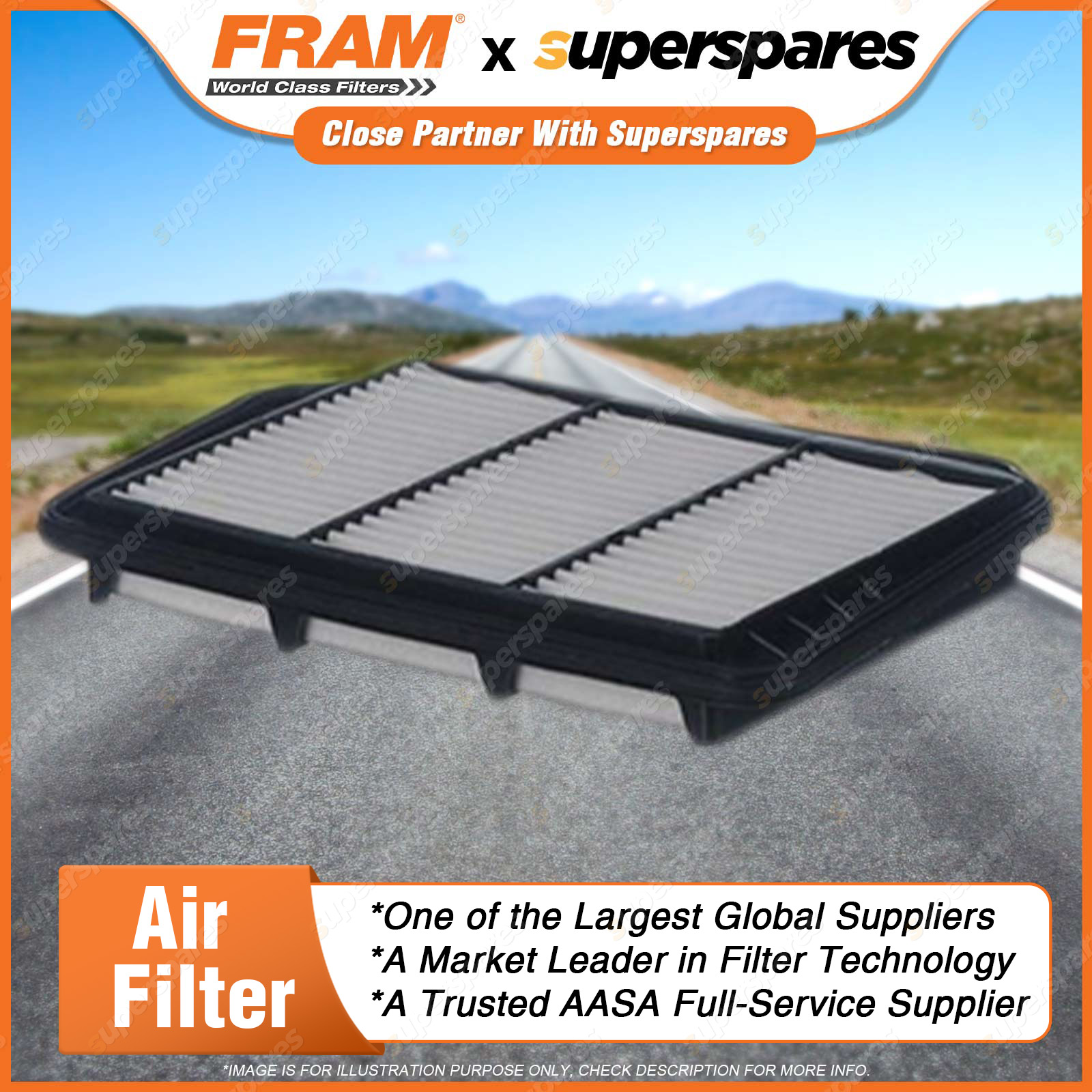 Air mixes with fuel before entering the combustion chamber and any dirt in the air will damage the combustion chamber and pistons.Air filters remove contaminants from the air entering the engine, thus protecting the combustion chamber from the damaging effects of airborne dirt. Features & Benefits: A FRAM air filter will ensure optimum engine combustion by creating the ideal balance in air/fuel mixture. FRAM Air filters improve the air flow in the engine and allow for better engine performance and superior fuel economy. FRAM air filters contain fine media paper to ensure that all sizes of dirt is collected and removed from the air entering the engine. Correct fineness and pleat geometry provides filter stability. We utilise moisture resistant media paper to ensure the media is not adversely affected by airborne moisture in the in-take air.FRAM panel air filters have the right density PU to ensure a tight fit in the air filter housing. | ![]() |