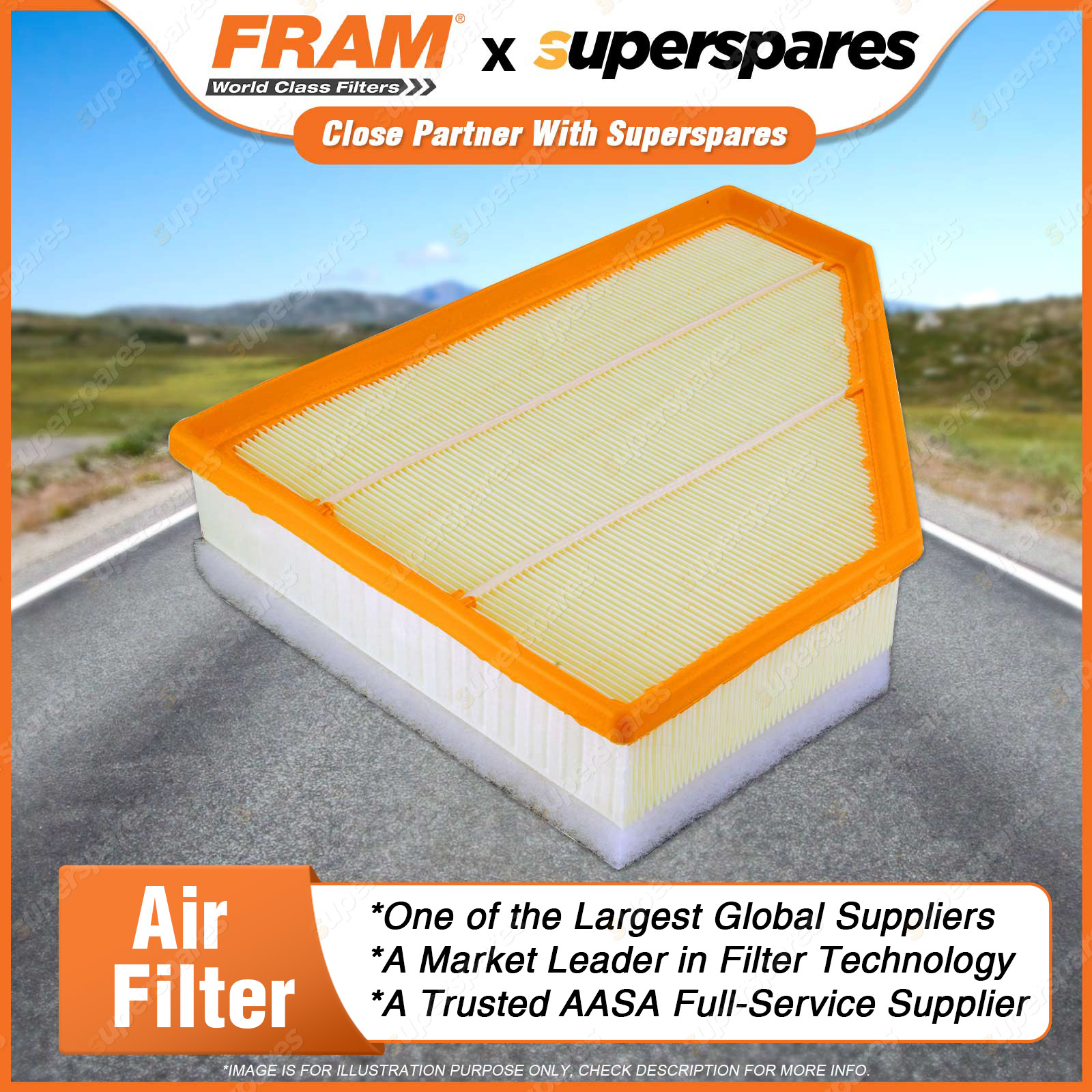 Air mixes with fuel before entering the combustion chamber and any dirt in the air will damage the combustion chamber and pistons.Air filters remove contaminants from the air entering the engine, thus protecting the combustion chamber from the damaging effects of airborne dirt. Features & Benefits: A FRAM air filter will ensure optimum engine combustion by creating the ideal balance in air/fuel mixture. FRAM Air filters improve the air flow in the engine and allow for better engine performance and superior fuel economy. FRAM air filters contain fine media paper to ensure that all sizes of dirt is collected and removed from the air entering the engine. Correct fineness and pleat geometry provides filter stability. We utilise moisture resistant media paper to ensure the media is not adversely affected by airborne moisture in the in-take air.FRAM panel air filters have the right density PU to ensure a tight fit in the air filter housing. | ![]() |