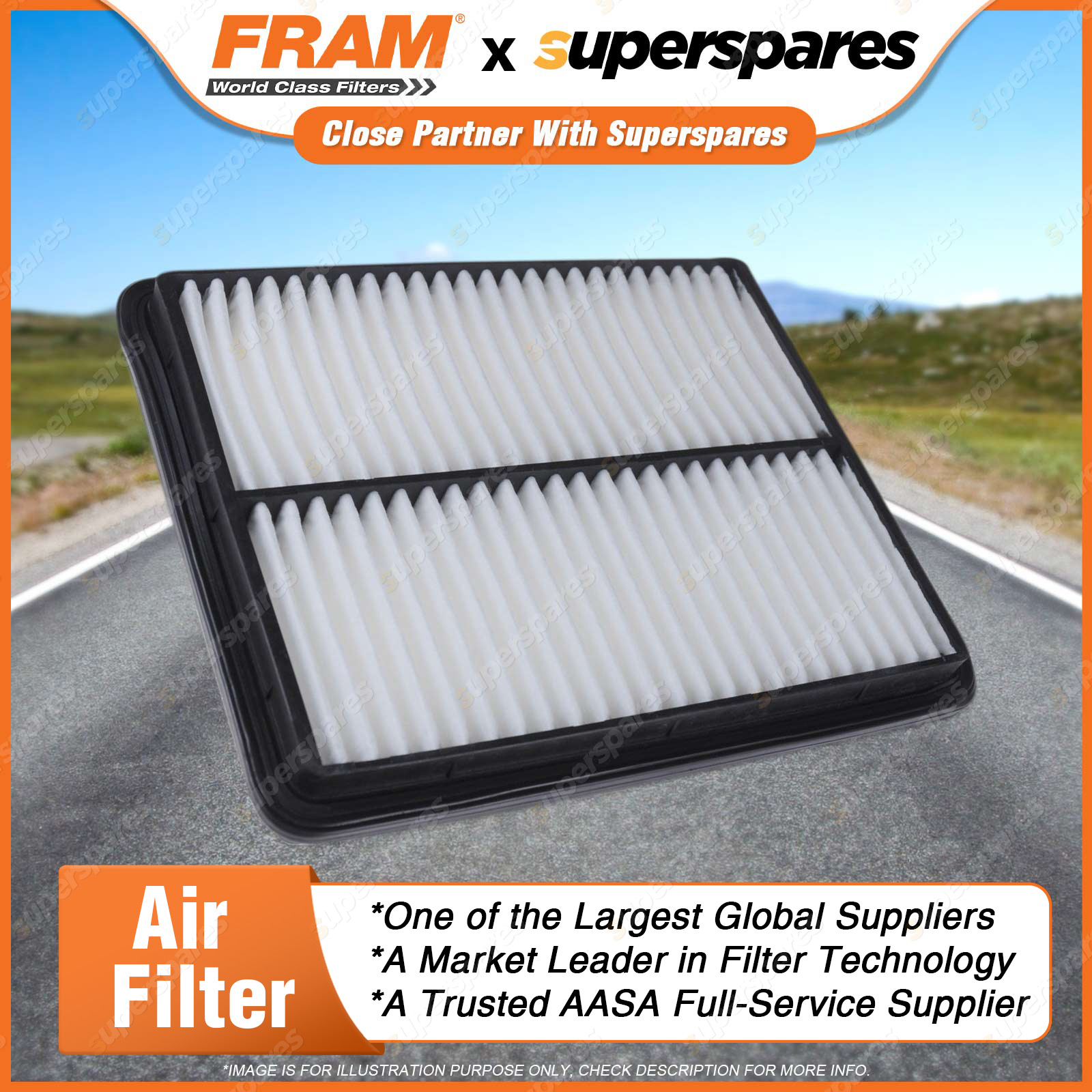 Air mixes with fuel before entering the combustion chamber and any dirt in the air will damage the combustion chamber and pistons.Air filters remove contaminants from the air entering the engine, thus protecting the combustion chamber from the damaging effects of airborne dirt. Features & Benefits: A FRAM air filter will ensure optimum engine combustion by creating the ideal balance in air/fuel mixture. FRAM Air filters improve the air flow in the engine and allow for better engine performance and superior fuel economy. FRAM air filters contain fine media paper to ensure that all sizes of dirt is collected and removed from the air entering the engine. Correct fineness and pleat geometry provides filter stability. We utilise moisture resistant media paper to ensure the media is not adversely affected by airborne moisture in the in-take air.FRAM panel air filters have the right density PU to ensure a tight fit in the air filter housing. | ![]() |