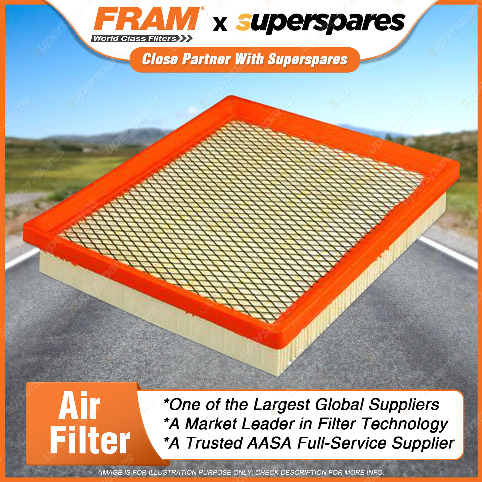 Air mixes with fuel before entering the combustion chamber and any dirt in the air will damage the combustion chamber and pistons.Air filters remove contaminants from the air entering the engine, thus protecting the combustion chamber from the damaging effects of airborne dirt. Features & Benefits: A FRAM air filter will ensure optimum engine combustion by creating the ideal balance in air/fuel mixture. FRAM Air filters improve the air flow in the engine and allow for better engine performance and superior fuel economy. FRAM air filters contain fine media paper to ensure that all sizes of dirt is collected and removed from the air entering the engine. Correct fineness and pleat geometry provides filter stability. We utilise moisture resistant media paper to ensure the media is not adversely affected by airborne moisture in the in-take air.FRAM panel air filters have the right density PU to ensure a tight fit in the air filter housing. | ![]() |