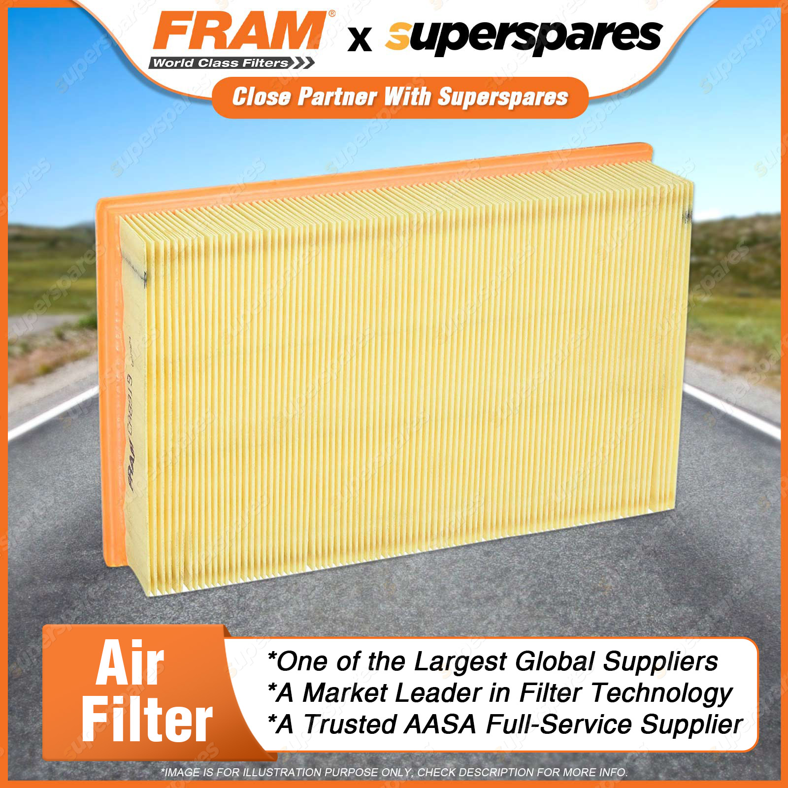 Air mixes with fuel before entering the combustion chamber and any dirt in the air will damage the combustion chamber and pistons.Air filters remove contaminants from the air entering the engine, thus protecting the combustion chamber from the damaging effects of airborne dirt. Features & Benefits: A FRAM air filter will ensure optimum engine combustion by creating the ideal balance in air/fuel mixture. FRAM Air filters improve the air flow in the engine and allow for better engine performance and superior fuel economy. FRAM air filters contain fine media paper to ensure that all sizes of dirt is collected and removed from the air entering the engine. Correct fineness and pleat geometry provides filter stability. We utilise moisture resistant media paper to ensure the media is not adversely affected by airborne moisture in the in-take air.FRAM panel air filters have the right density PU to ensure a tight fit in the air filter housing. | ![]() |