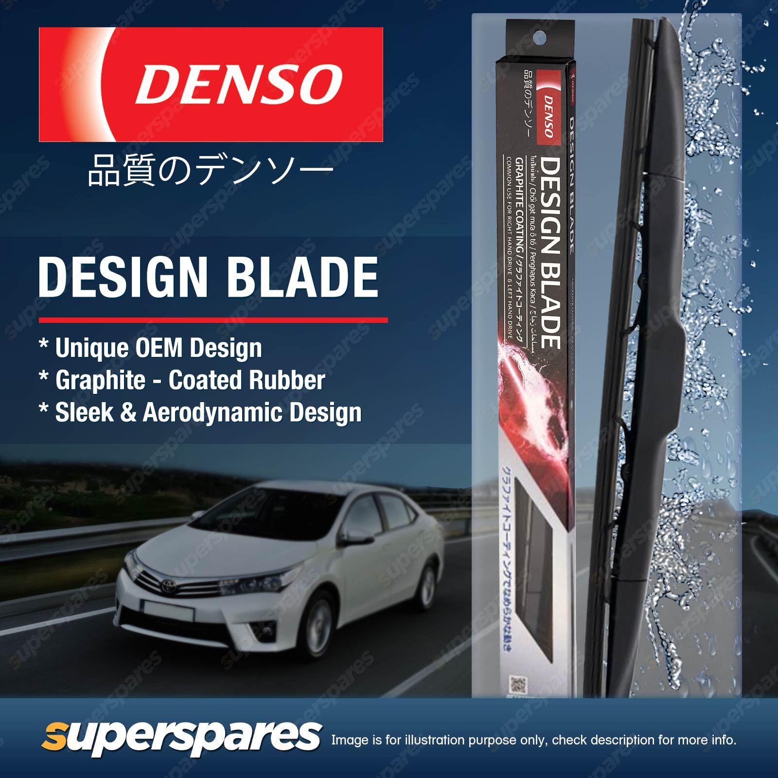 Design Blade Series (DDS) Truly advanced,OEM specification wiping technology - developed by DENSO - that blends outstanding wiping performance with stylish,integrated design.You can also take advantage of our Retrofit Design Blade range.Covering hundreds of key applications the range enables your customers to upgrade from conventional blades to high performance Uni Wiper Blades. |