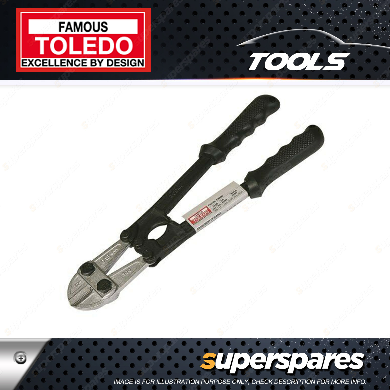 Toledo Bolt Cutter 450mm (18") Length: 450mm (18 ) Suitable for general purpose use with soft and medium metal applications only |