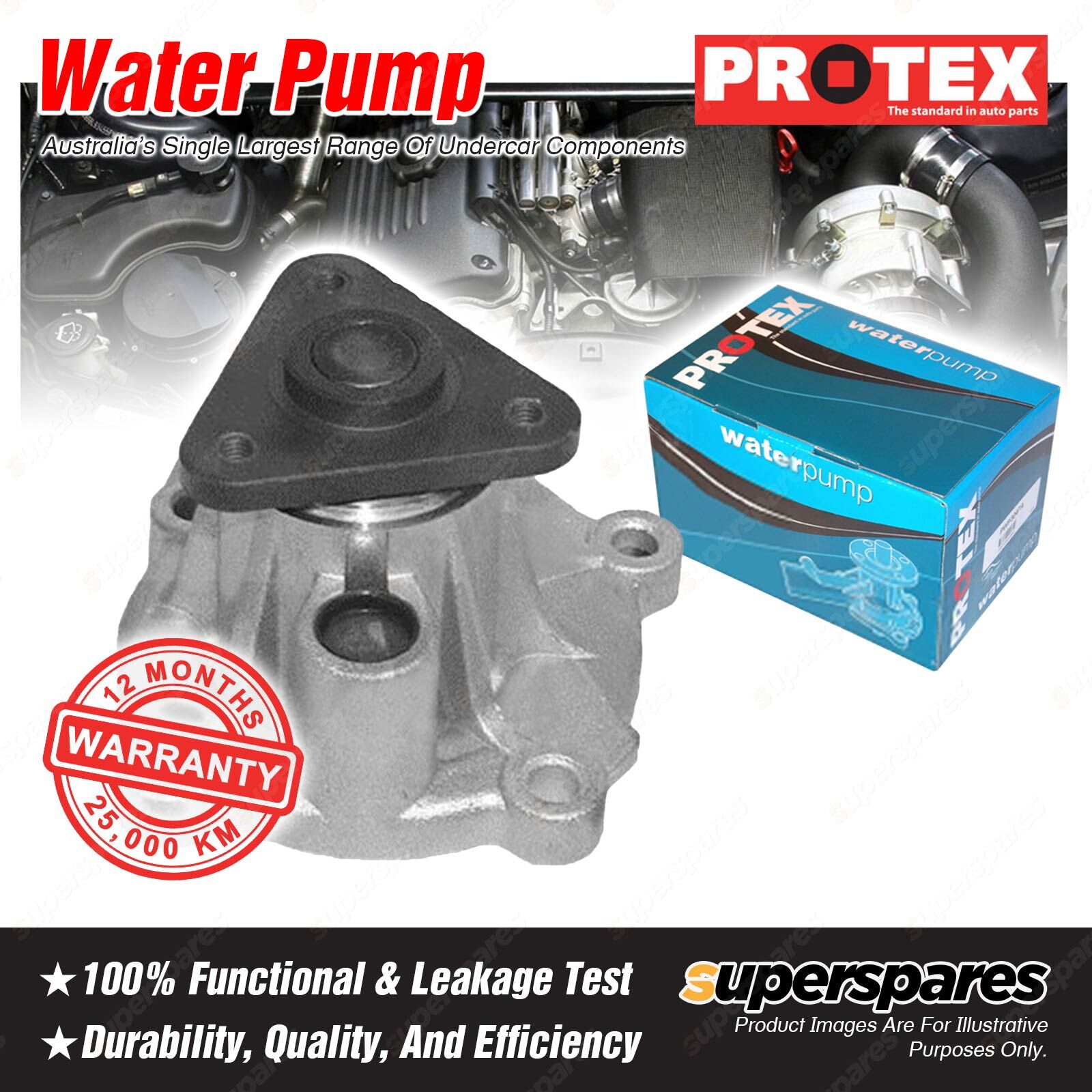 ![]() Protex Blue water pumps are designed for maximum flow and coolant distribution. Each pump is made to high standards with quality bearings, seals, and brand new precision machined housings. Protex Blue pumps are a low cost durable stock replacement backed by a 1 year /25,000 km warranty for peace of mind. |