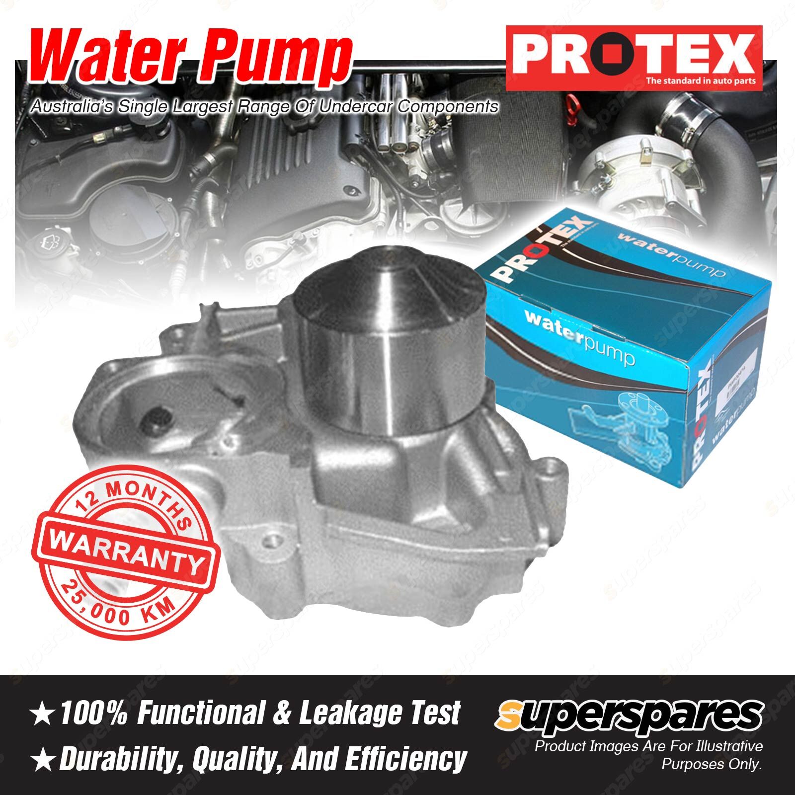 ![]() Protex Blue water pumps are designed for maximum flow and coolant distribution. Each pump is made to high standards with quality bearings, seals, and brand new precision machined housings. Protex Blue pumps are a low cost durable stock replacement backed by a 1 year /25,000 km warranty for peace of mind. |