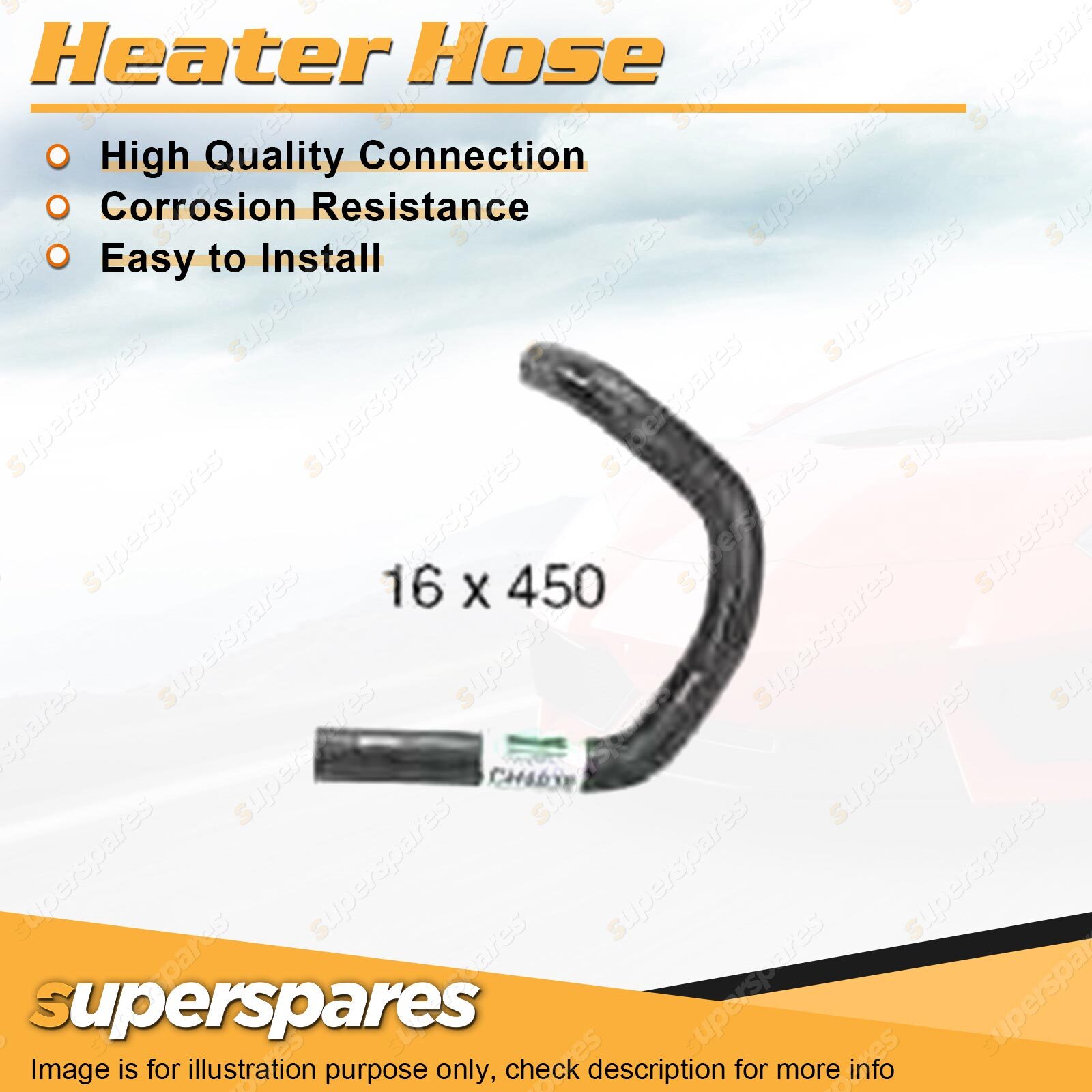 Content : 1 x Heater Hose Brand : Superspares | Parameter : Length : 450mm Inside Diameter : 16mm |