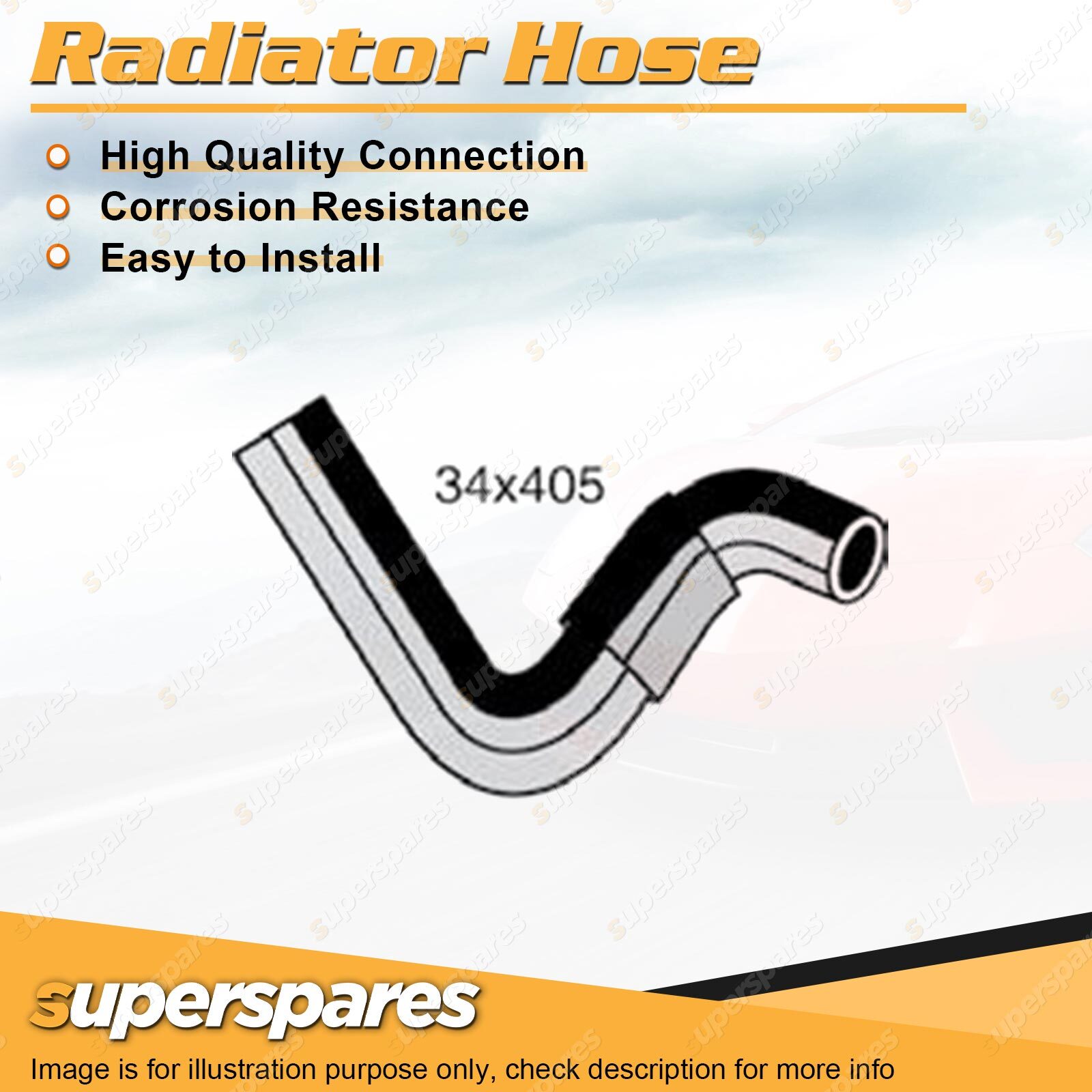 Content : 1 x Radiator Hose Brand : Superspares Position : Lower | Parameter : Length : 405mm Inside Diameter : 34mm |