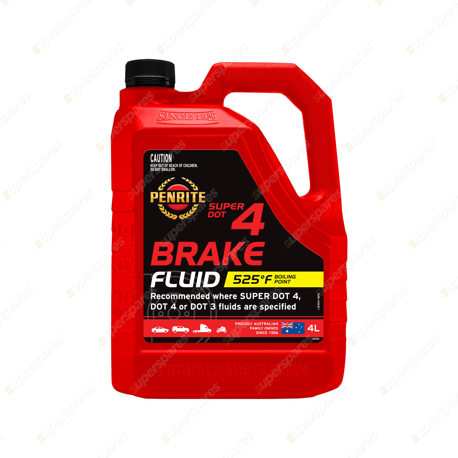 SUPER DOT 4 BRAKE FLUID is recommended for re-Fill or top-up of brake and clutch systems in passenger cars, 4WD's, motorcycles, light and Heavy Duty commercial vehicles, mining, construction and agricultural equipment that require a non petroleum based DOT 3, DOT 4 or Super DOT 4 brake & clutch Hydraulic fluid.