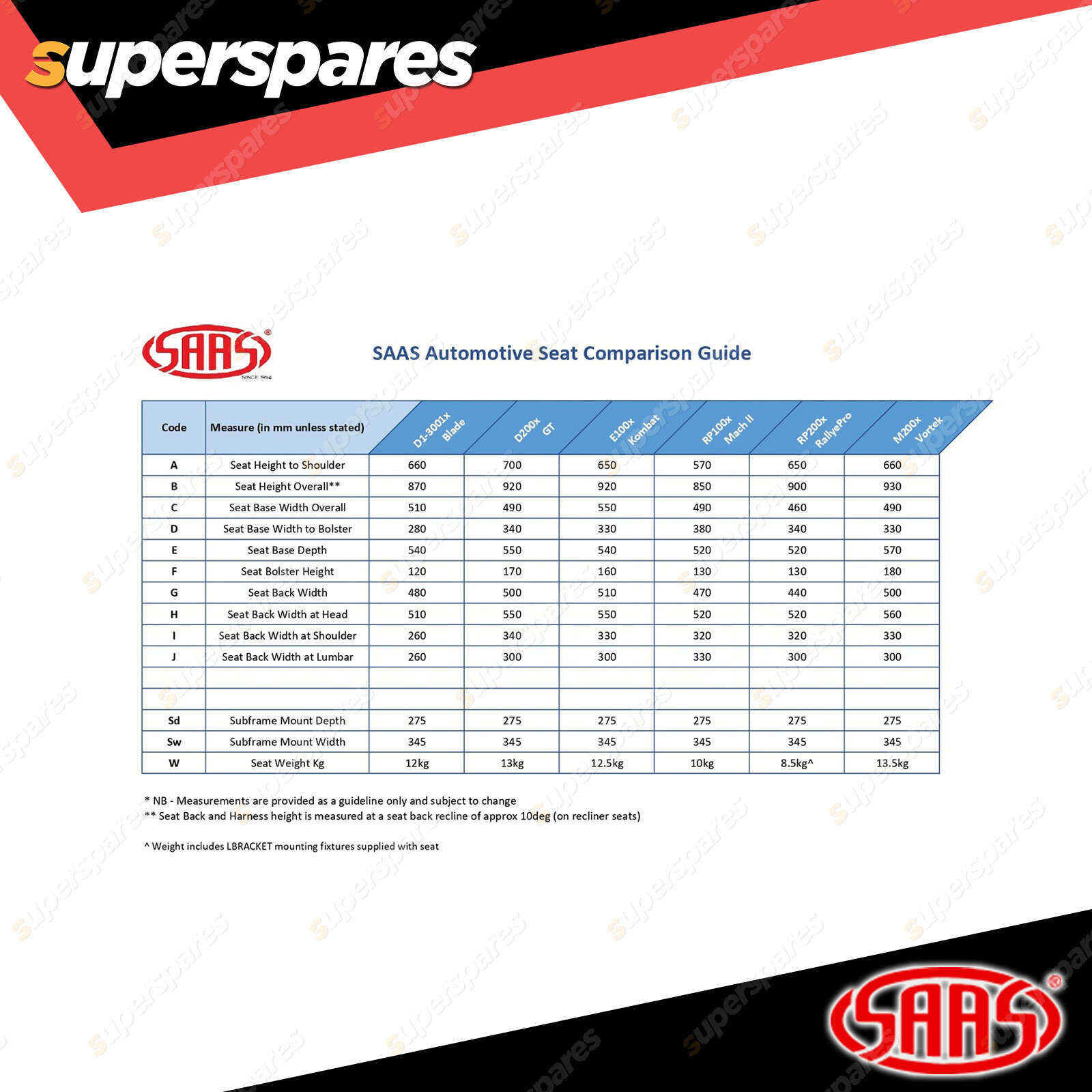 SAAS Seats are best fitted in conjunction with either of the following components:
