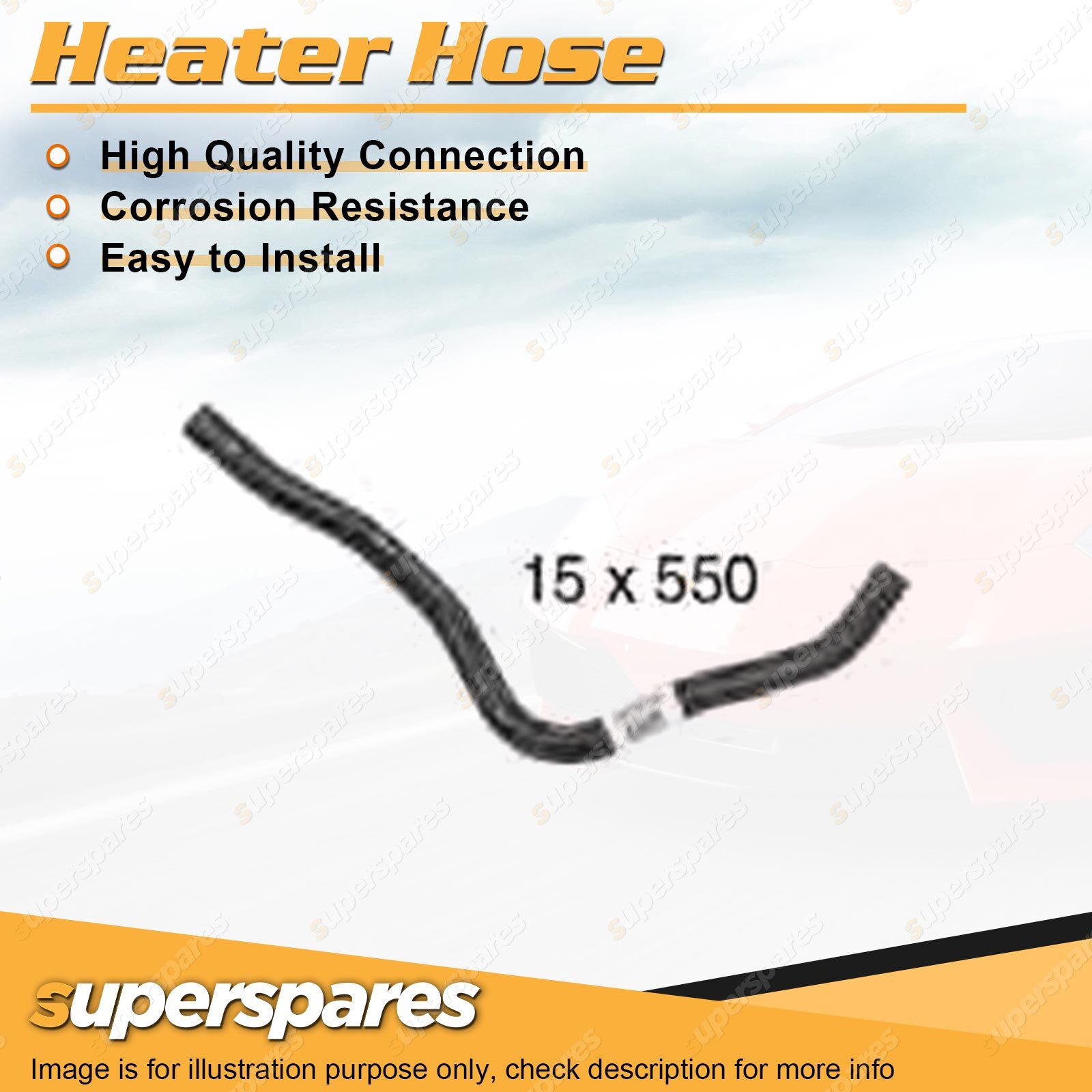 Content : 1 x Heater Hose Brand : Superspares Position : Upper | Parameter : Length : 550mm Inside Diameter : 15mm |