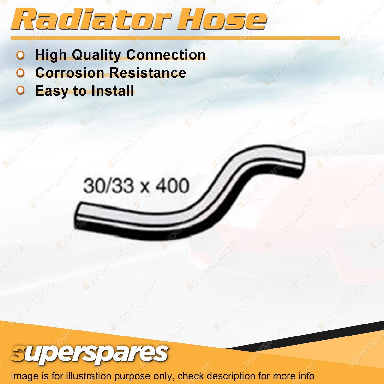 Content : 1 x Radiator Hose Brand : Superspares Position : Upper | Parameter : Length : 400mm Inside Diameter : 30mm Bell Inside Diameter : 33mm |