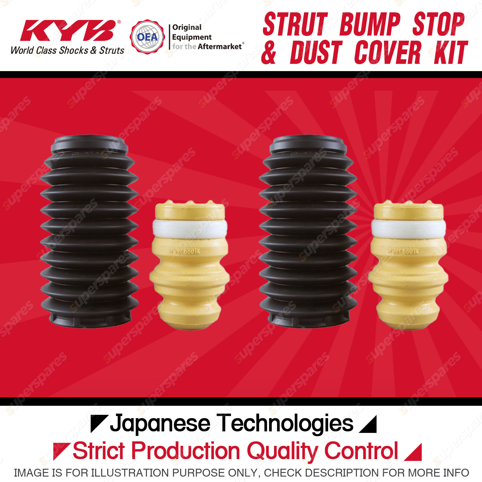 Note: eBay's compatibility table is not accurate in some cases. Please refer to the following information we have provided for you. Copyright © 2014 - 2023 Superspares. All rights reserved. Contents : 2x Front KYB Strut Bump Stops Suit :