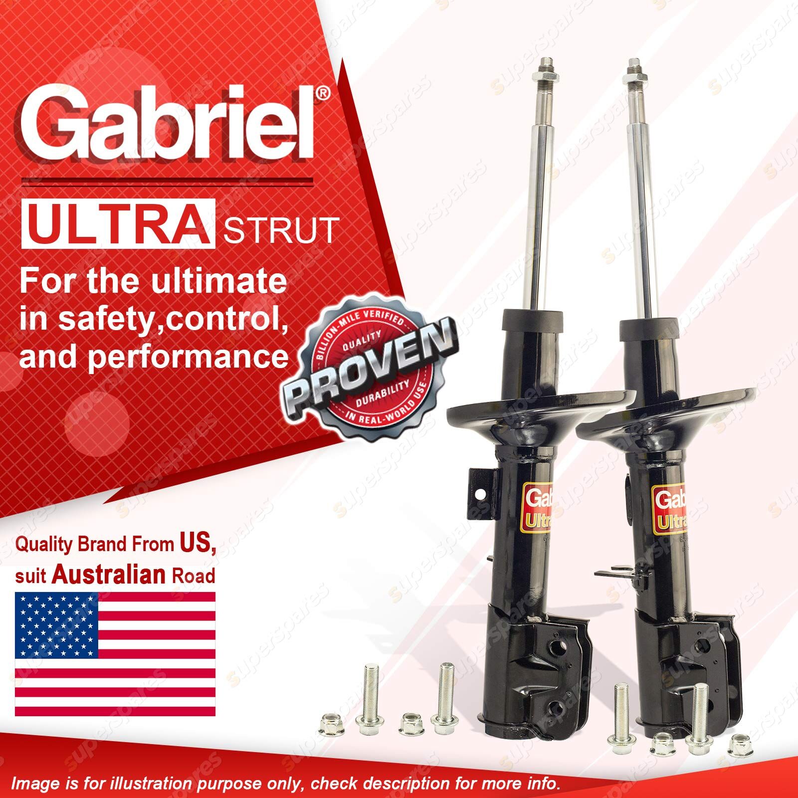 | Note: eBay's compatibility table is not accurate in some cases. Please refer to the following information we have provided for you. Copyright © 2014 - 2023 Superspares. All rights reserved. Contents : 2 x Front Gabriel Ultra Strut Shock Absorbers - Gas Warranty : 3 Years Suit : Holden (GMH) Commodore VZ Sedan Incl. Calais excl. Country Pack susp. 8/04 - 7/06 Holden (GMH) Commodore VZ Wagon Incl. Calais with STD, FE2, HD, OE lowered susp. excl. Country Pack susp. 8/04 - 8/07 Holden (GMH) Commodore VZ Ute excl. Crewman, One Tonner 8/04 - 7/06 Holden (GMH) Crewman VZ, VZII excl. Cross 8, Cross 6 & lowered susp. 8/04 - 9/07 Notes : Suits vehicles with upper & lower ball type sway bar mounts. |