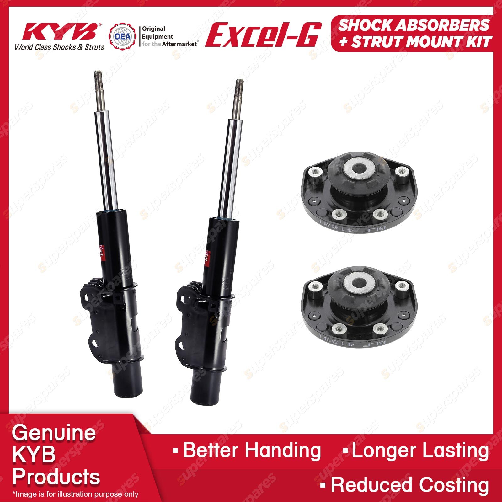 The best choice to replace your MacPherson Strut to ensure comfort and a steady ride. Our patented valving and the use of pressurised nitrogen gas in the Excel-G range will restore riding comfort and, at the same time, dramatically reduce the aeration or foaming that commonly occurs in other shock absorbers. Outstanding features include: * Multi-lip oil seal extends life.