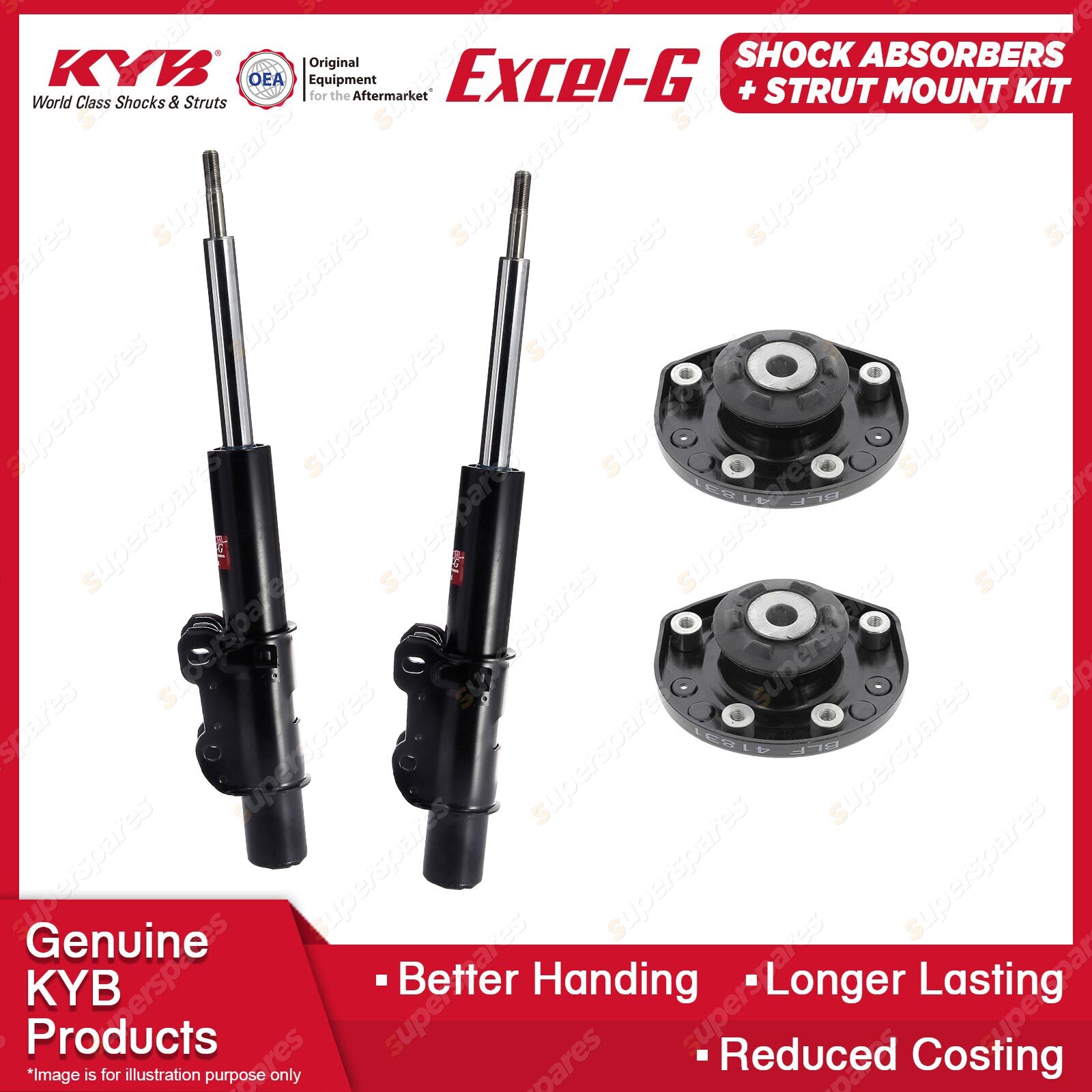 The best choice to replace your MacPherson Strut to ensure comfort and a steady ride. Our patented valving and the use of pressurised nitrogen gas in the Excel-G range will restore riding comfort and, at the same time, dramatically reduce the aeration or foaming that commonly occurs in other shock absorbers. Outstanding features include: * Multi-lip oil seal extends life.