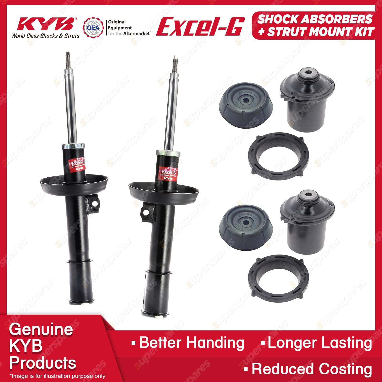 The best choice to replace your MacPherson Strut to ensure comfort and a steady ride. Our patented valving and the use of pressurised nitrogen gas in the Excel-G range will restore riding comfort and, at the same time, dramatically reduce the aeration or foaming that commonly occurs in other shock absorbers. Outstanding features include: * Multi-lip oil seal extends life.