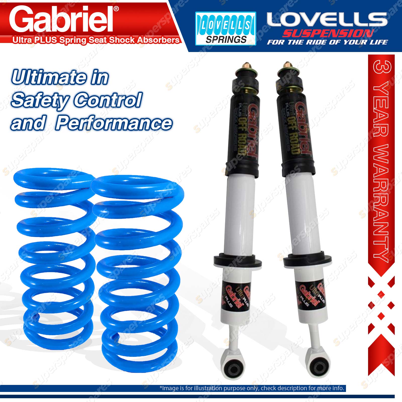 Contents: 2 x Gabriel Ultra PLUS Spring Seat Shock Absorbers - Gas 2 x Raised Lovells Springs Suit: Toyota Prado GRJ120, KZJ120, KDJ120, RZJ120 6 Cyl Wagon LWB 2/03-10/09 Toyota Prado GRJ120, KZJ120, KDJ120, RZJ120 6 Cyl Wagon SWB 2/03-10/09 Notes: Gabriel Shocks: OE & 40mm Raised Height |