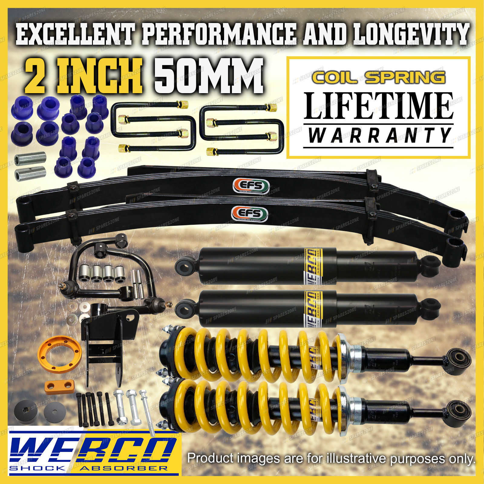 As car enthusiasts ourselves we completely understand the need for only wanting the best top quality aftermarket parts for your vehicle from a reliable and trustworthy source. We have utilised our understanding of this need to develop the best quality lift kits and build strong relationships with out valued customers; here's how... eBay have listed us as a "Top Rated Seller" with a 99.4% Positive feedback rating. We also offer a 30 day change of mind return period with a 100% fitment guarantee to ensure your peace of mind. Spareszone's lift kits offer an immense improvement in suspension performance and comfortability when compared to the standard stock suspension of your vehicle giving our customers a greater driving experience on and off road. |