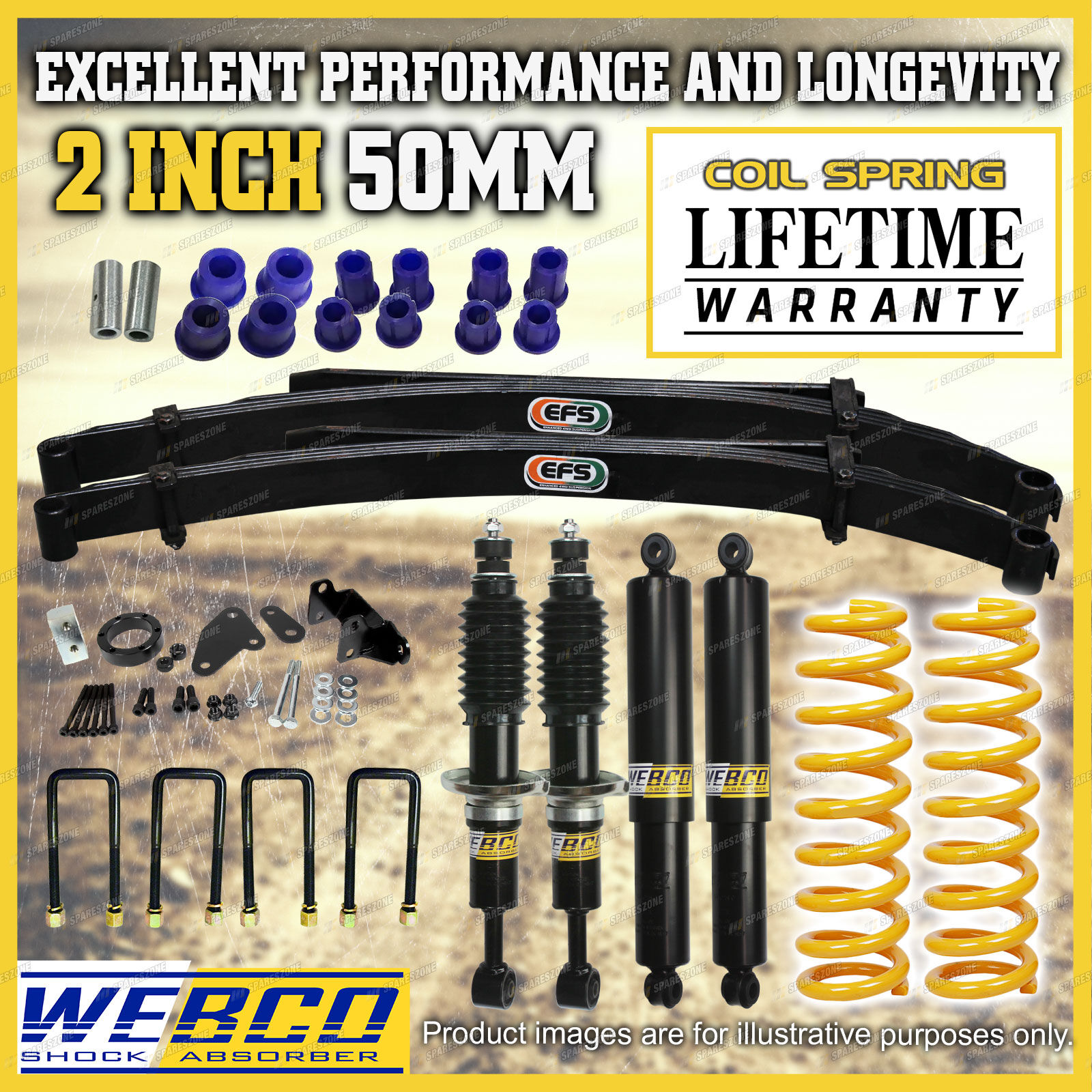 As car enthusiasts ourselves we completely understand the need for only wanting the best top quality aftermarket parts for your vehicle from a reliable and trustworthy source. We have utilised our understanding of this need to develop the best quality lift kits and build strong relationships with out valued customers; here's how... eBay have listed us as a "Top Rated Seller" with a 99.4% Positive feedback rating. We also offer a 30 day change of mind return period with a 100% fitment guarantee to ensure your peace of mind. Spareszone's lift kits offer an immense improvement in suspension performance and comfortability when compared to the standard stock suspension of your vehicle giving our customers a greater driving experience on and off road. |