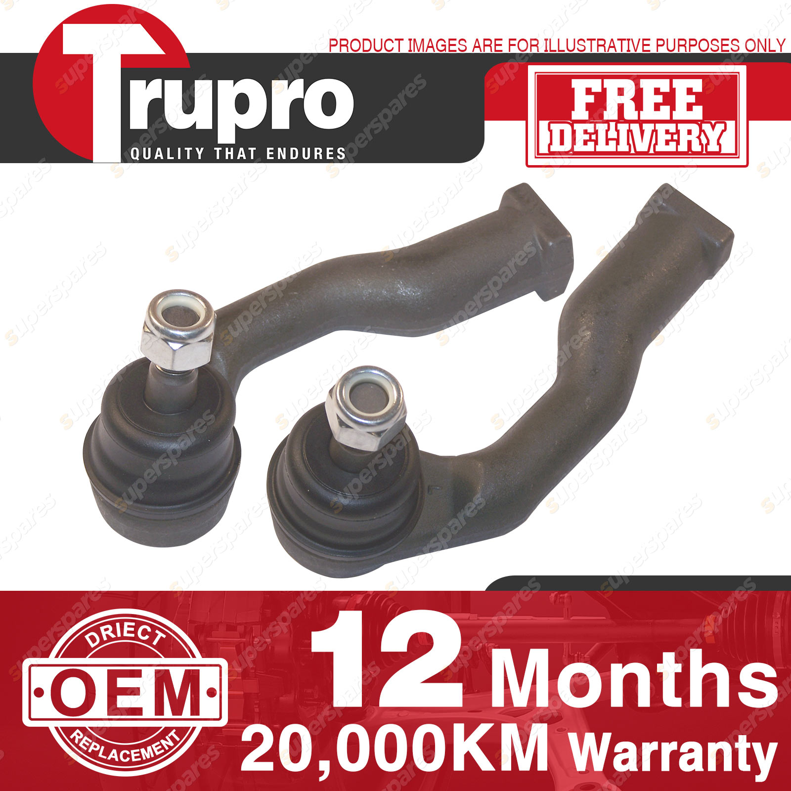 2 Pcs Trupro LH+RH Inner Tie Rod Ends