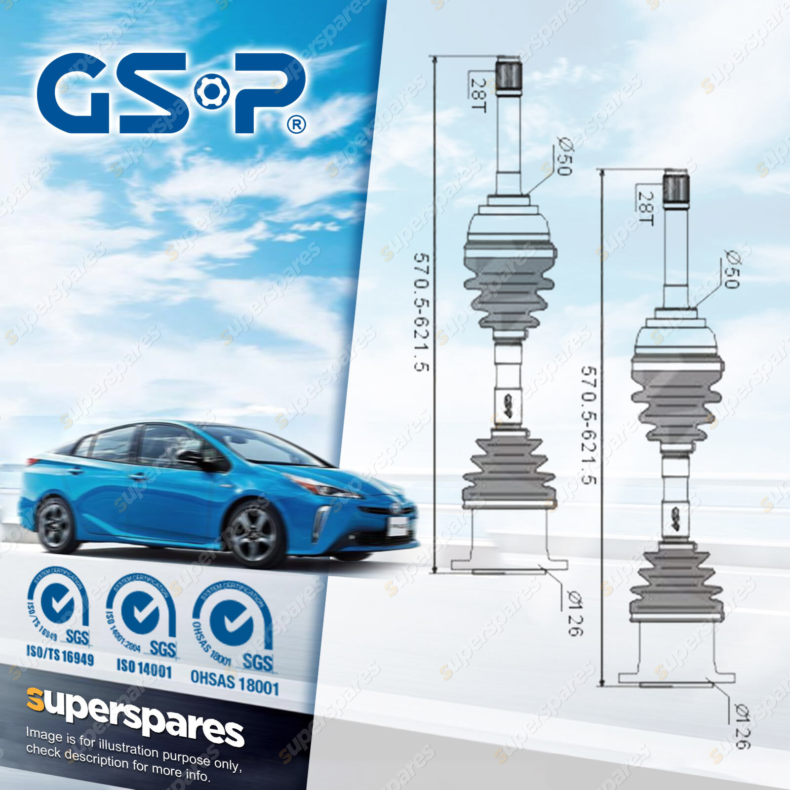 GSP Constant Velocity Shaft Assemblies are manufactured using "high quality" CV Joints, Boots and Axles etc. All components are machined on the latest CNC equipment using top quality materials and coatings which will ensure long life and reliable performance in all conditions. The CV Joint Boots used on the GSP CV Joints are made from quality Neoprene which lasts much longer than the standard rubber boots many other manufacturers use. GSP CV Shafts are tested for shear & load strength and life span and also have a rust preventative coating, they are internationally renowned for performance & reliability. | ![]() |