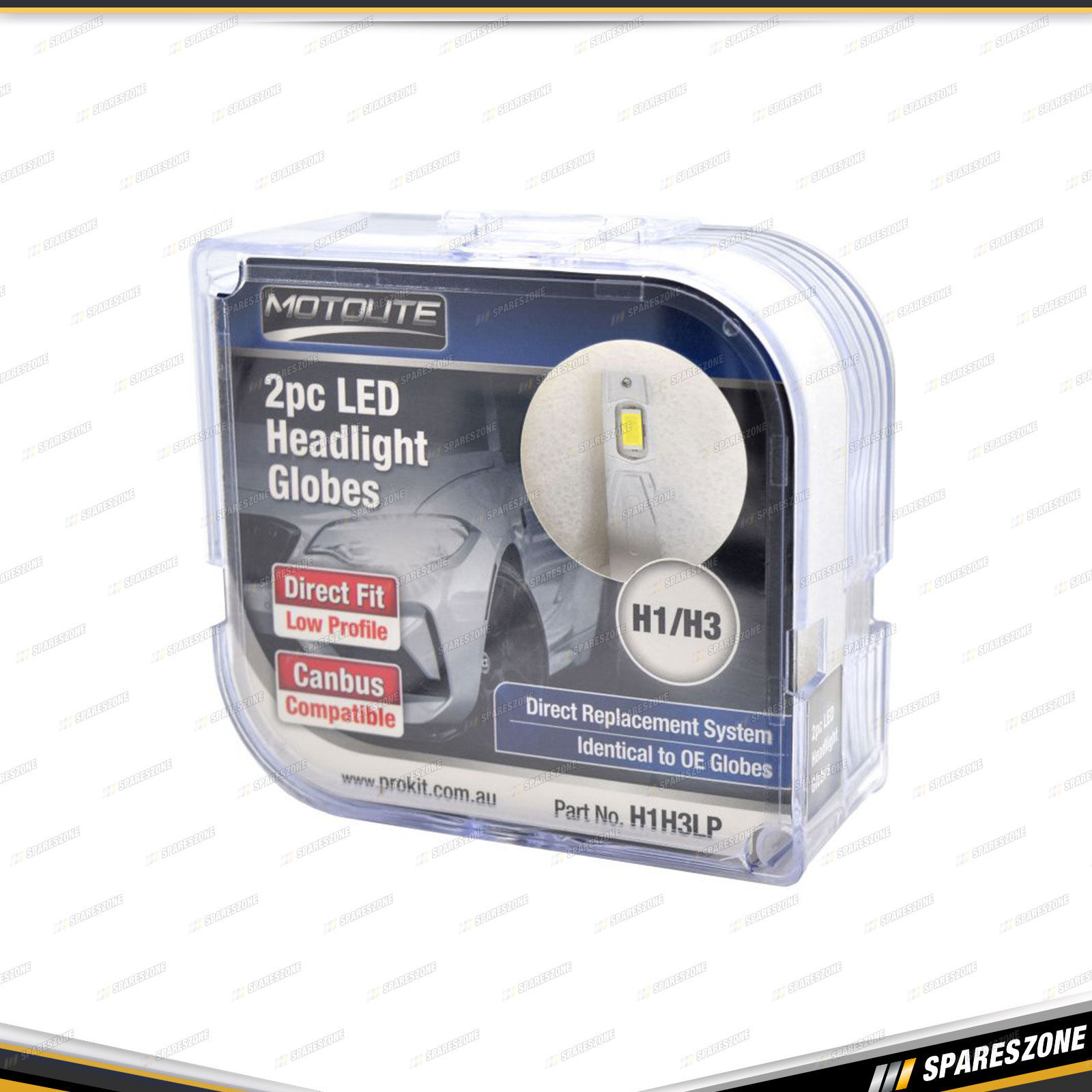 Contents : Motolite 2pc H1/H3 Direct Fit LED Headlight Globes