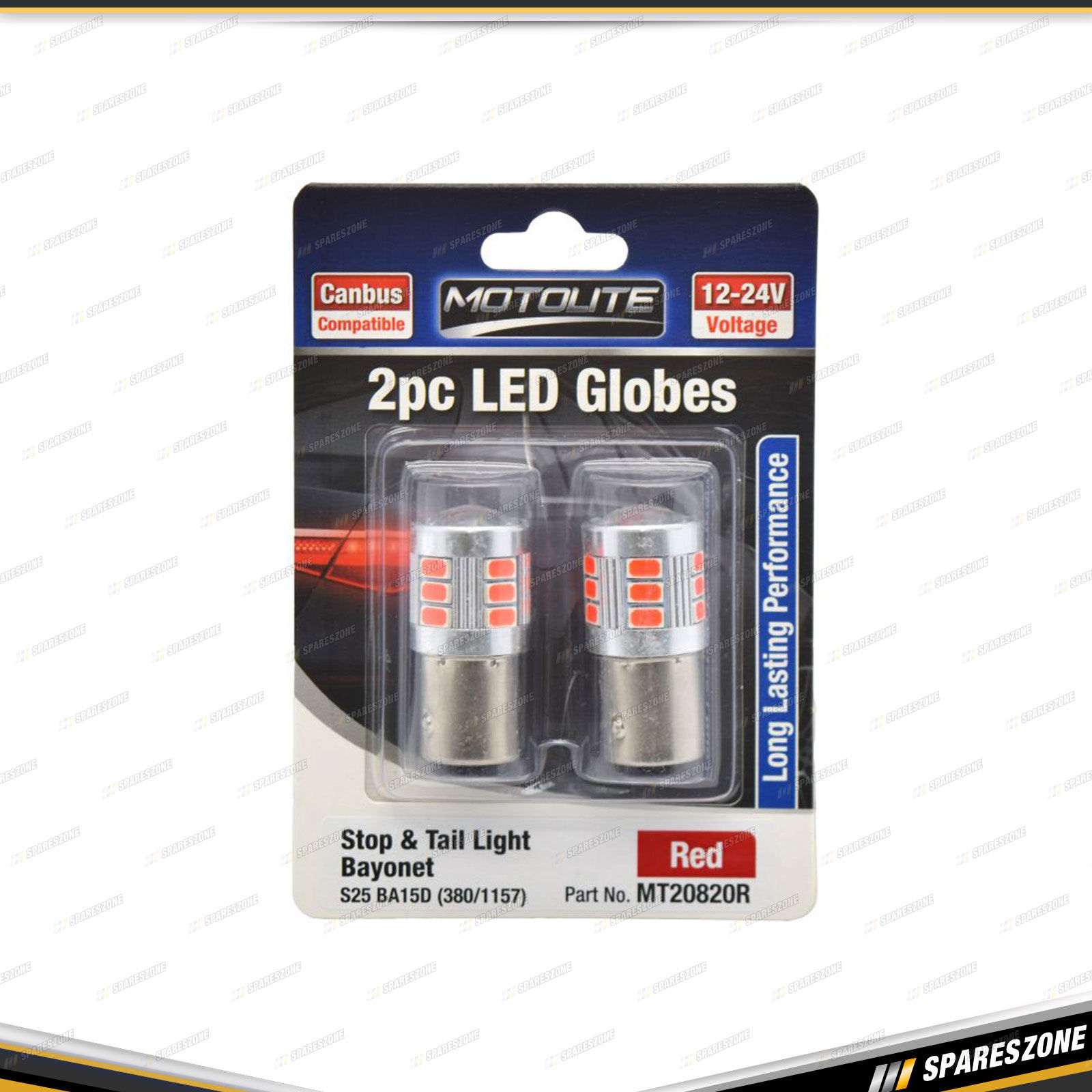 Contents : Motolite 2pc LED Globes S25 BA15D (380/1157) Red
