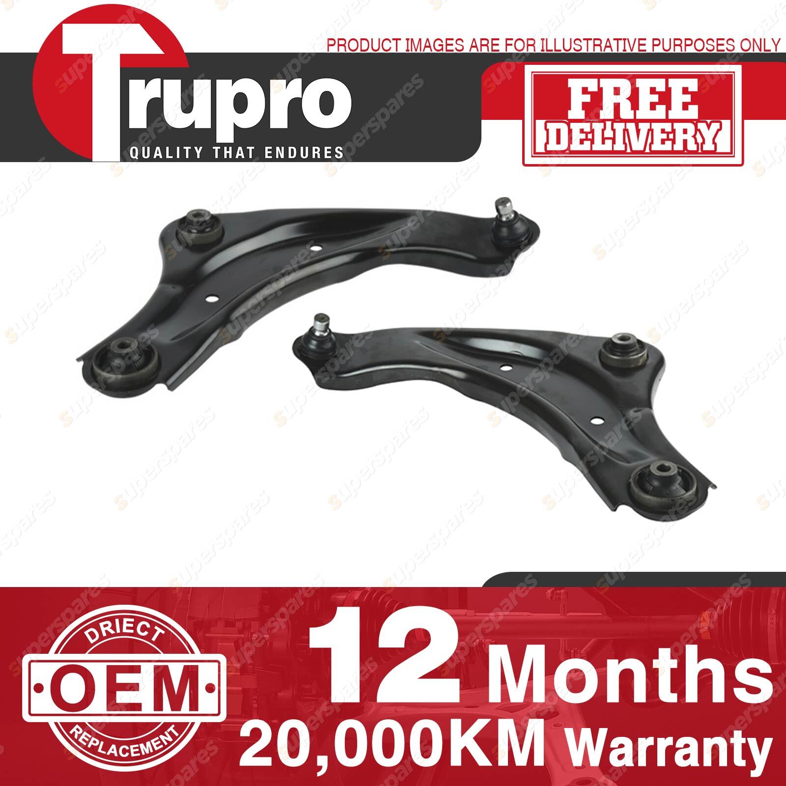 2 Pcs Trupro Front Lower Control Arms