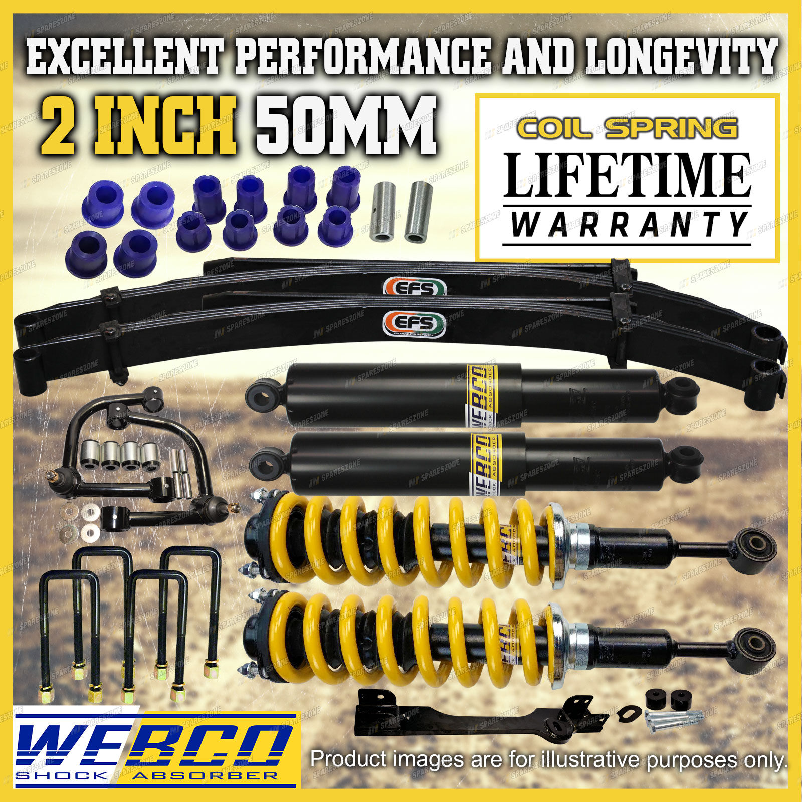 As car enthusiasts ourselves we completely understand the need for only wanting the best top quality aftermarket parts for your vehicle from a reliable and trustworthy source. We have utilised our understanding of this need to develop the best quality lift kits and build strong relationships with out valued customers; here's how... eBay have listed us as a "Top Rated Seller" with a 99.4% Positive feedback rating. We also offer a 30 day change of mind return period with a 100% fitment guarantee to ensure your peace of mind. Spareszone's lift kits offer an immense improvement in suspension performance and comfortability when compared to the standard stock suspension of your vehicle giving our customers a greater driving experience on and off road. |