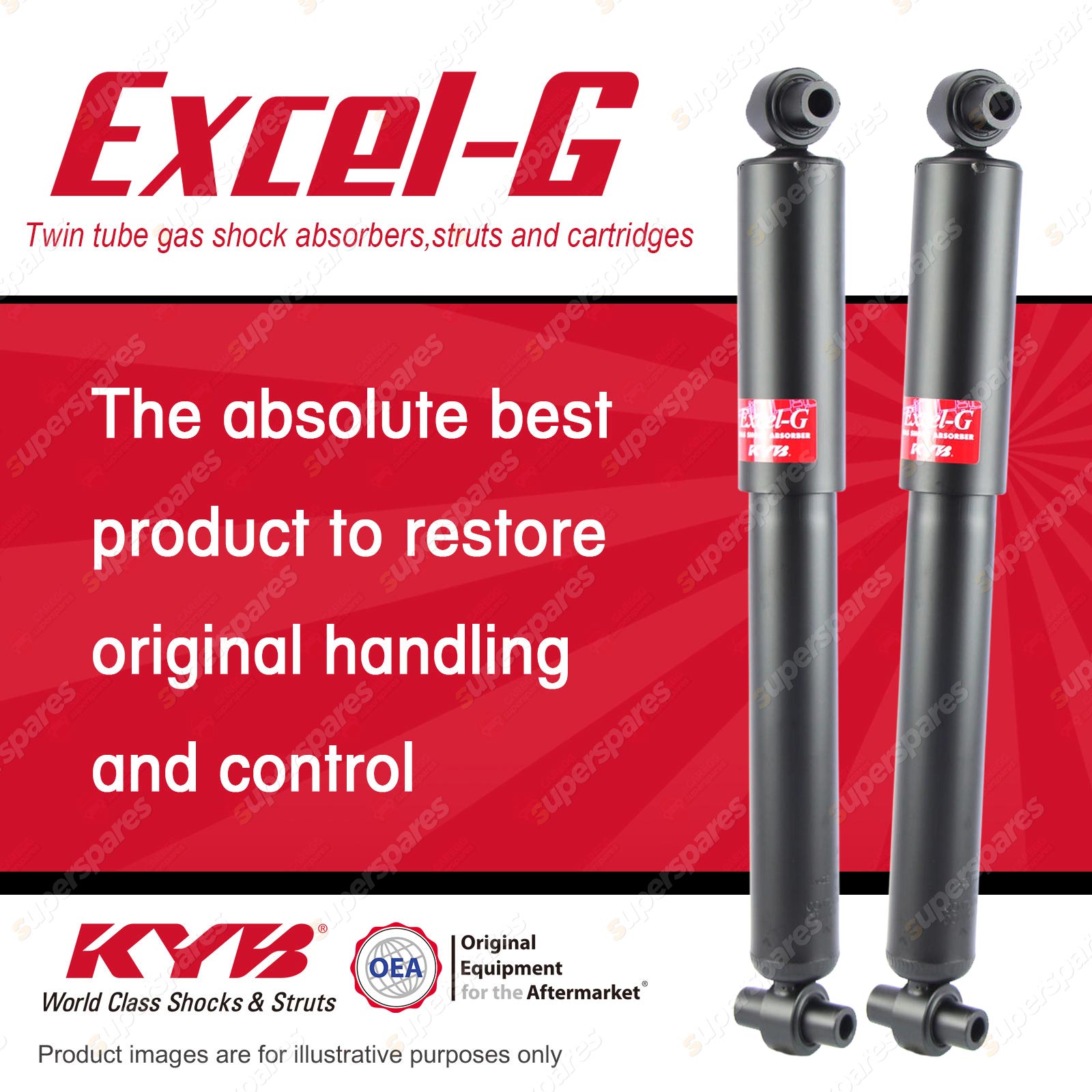 CONTENTS:Pair KYB EXCEL-G Twin Tube Gas-filled Shock Absorbers (Rear)