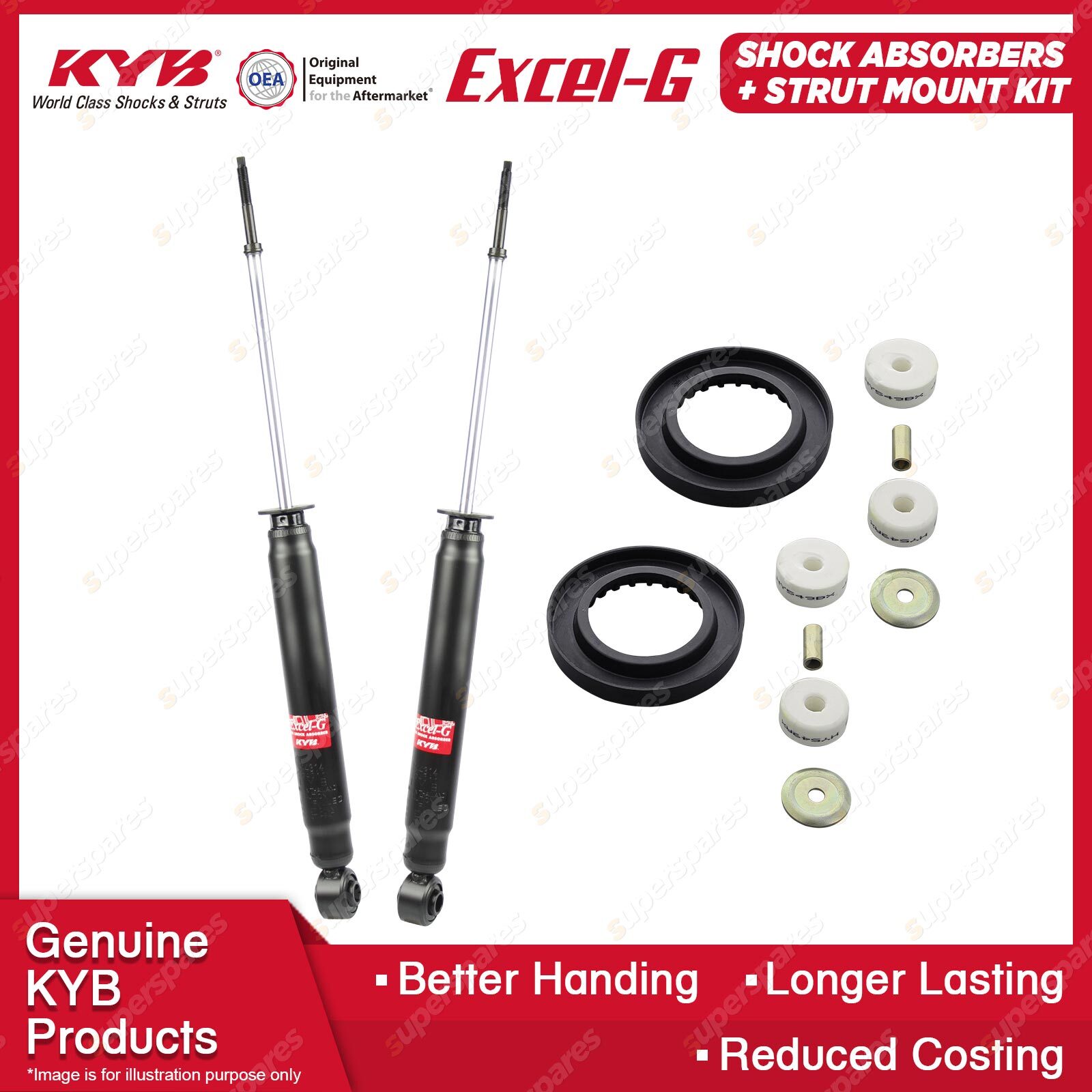 The best choice to replace your MacPherson Strut to ensure comfort and a steady ride. Our patented valving and the use of pressurised nitrogen gas in the Excel-G range will restore riding comfort and, at the same time, dramatically reduce the aeration or foaming that commonly occurs in other shock absorbers. Outstanding features include: * Multi-lip oil seal extends life.
