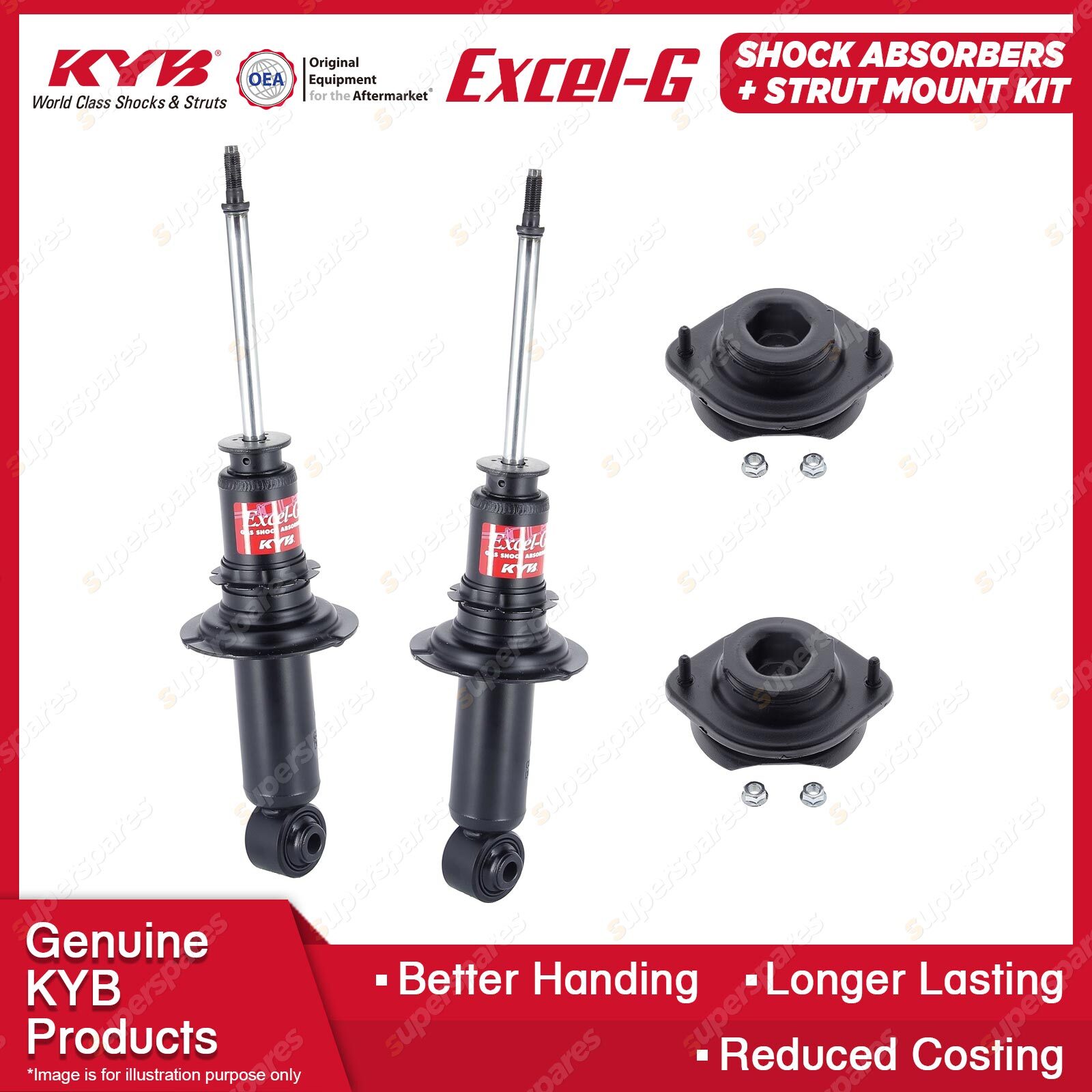 The best choice to replace your MacPherson Strut to ensure comfort and a steady ride. Our patented valving and the use of pressurised nitrogen gas in the Excel-G range will restore riding comfort and, at the same time, dramatically reduce the aeration or foaming that commonly occurs in other shock absorbers. Outstanding features include: * Multi-lip oil seal extends life.