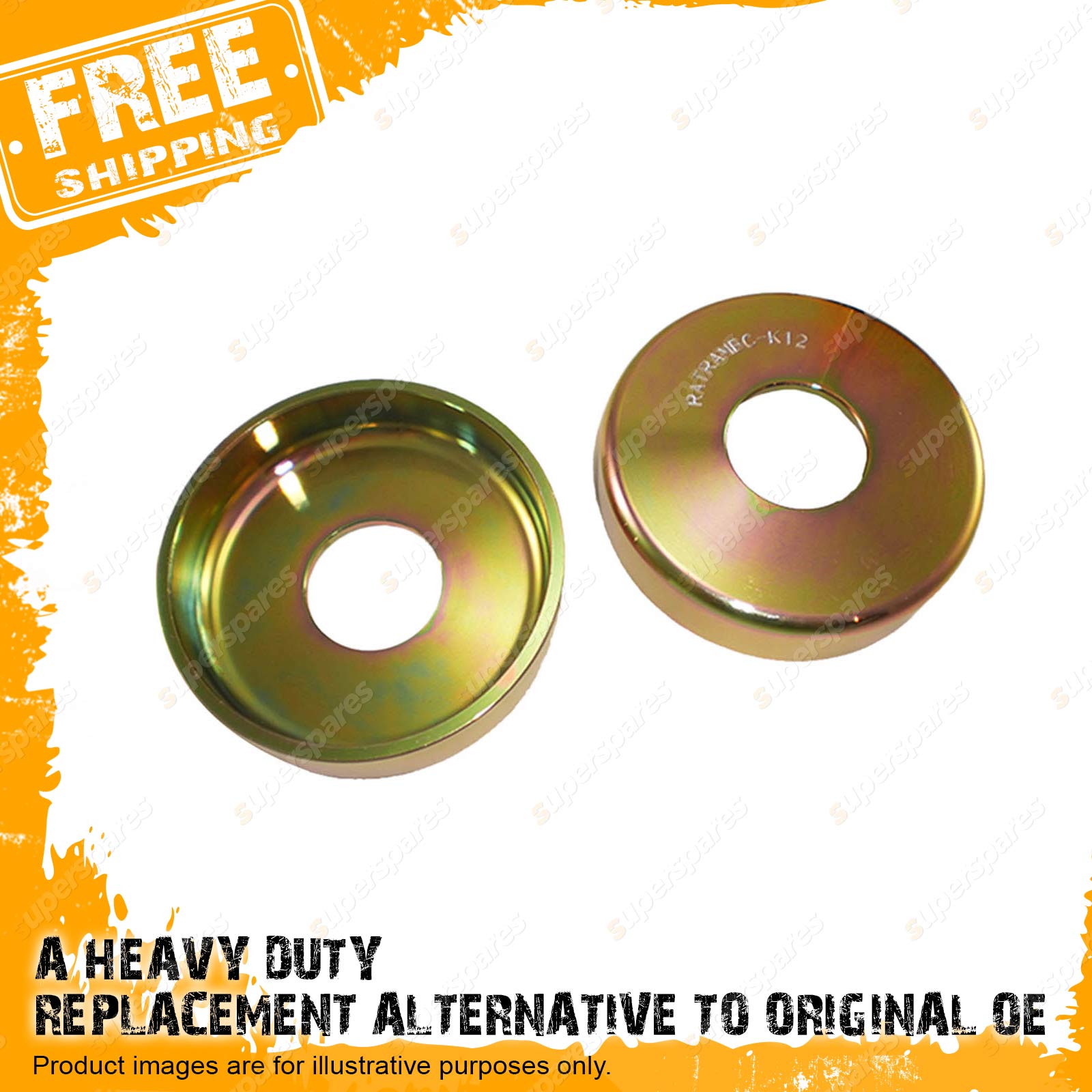 Trupro Radius Arm Spacer Washer Trupro Radius Arm Spacer Kit is primarily used to 'push' the front diff forward (approx. 15mm) to give better clearance for larger tyres so they don't hit the front mud flaps and guards. Another common issue with the Patrols is for the standard radius arm washers to bend following excessive impacts, which can result in premature failure of the arm. Bigger tyres also generally means bigger shocks with longer travel. This increase in travel can put additional stress on the rear radius arm rubber bushings, causing them to distort or become dislodged. The High Tensile Trupro Radius Arm Spacers, being stronger than standard washers, resist bending and aid in radius arm longevity. The Roadsafe Radius Arm Spacers are also designed in such a way as to 'cup' the rubber bushing, preventing it from being dislodged, resulting in improved bushing longevity. The Kit is basically an upgraded washer, with improved bushing cup. It does not provide for any spacing component. Just replace the original washer with the Kit which is a stronger replacement with longer side walls |