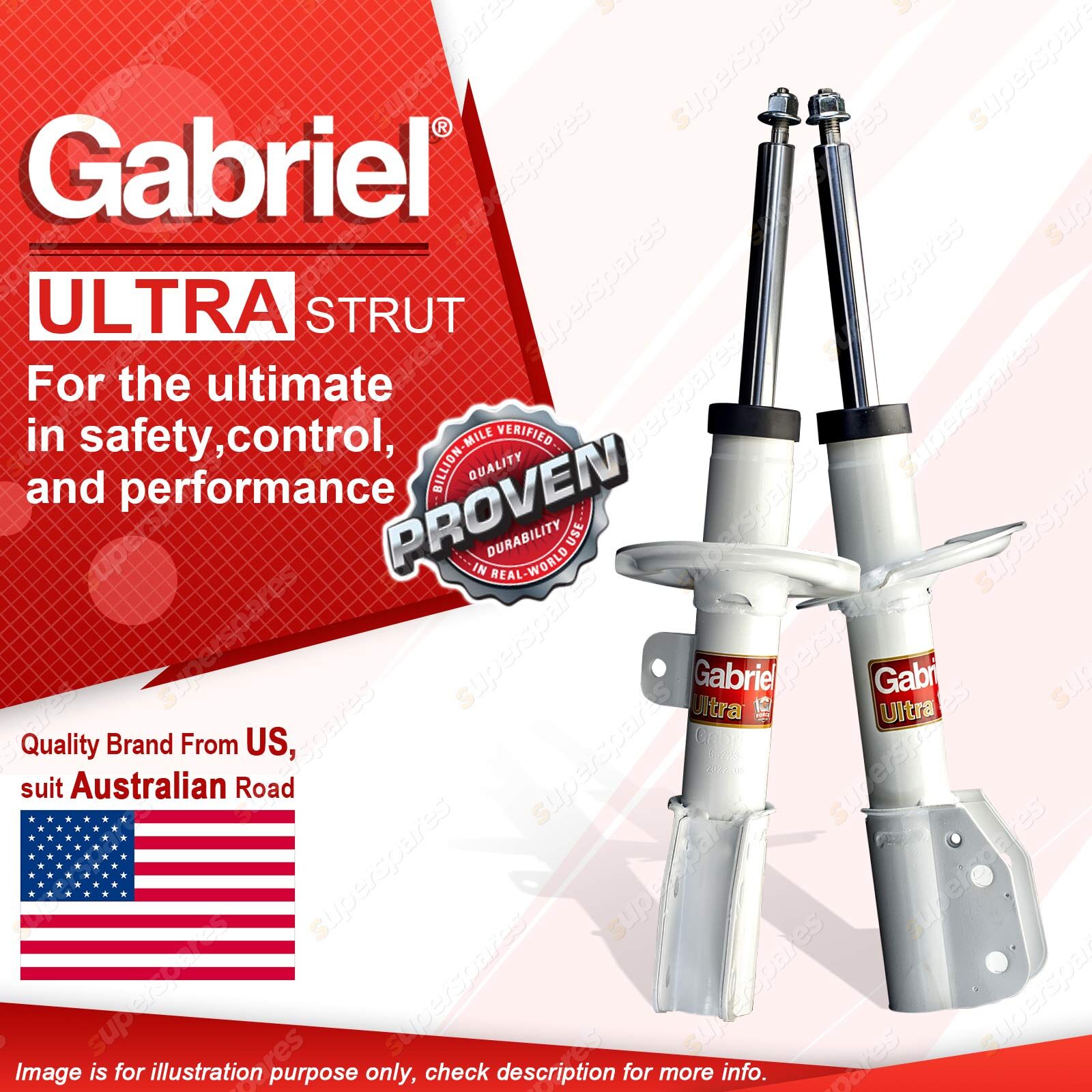 | Note: eBay's compatibility table is not accurate in some cases. Please refer to the following information we have provided for you. Copyright © 2014 - 2023 Superspares. All rights reserved. Contents : 2 x Front Gabriel Ultra Strut Shock Absorbers - Gas Warranty : 3 Years Suit : Holden (GMH) CAPTIVA CG, CX, LX, SX FWD & 4WD excl. SLS 10/06 - on |