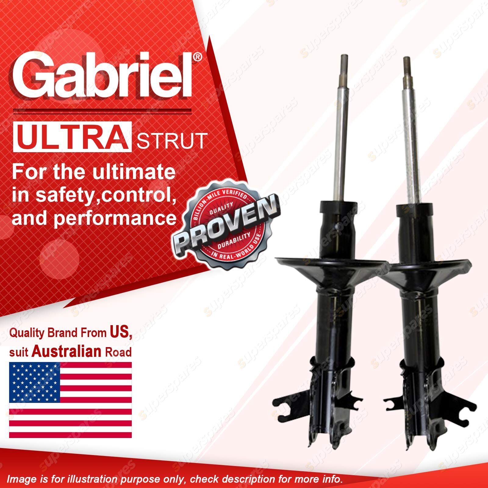 | Note: eBay's compatibility table is not accurate in some cases. Please refer to the following information we have provided for you. Copyright © 2014 - 2023 Superspares. All rights reserved. Contents : 2 x Front Gabriel Ultra Strut Shock Absorbers - Gas Warranty : 3 Years Suit : Mitsubishi Lancer CE 1.5, 1.6, 1.8L Sedan, Coupe excl. EVO 4WD 5/96 - 9/03 Mitsubishi Mirage CE 1.5L Hatchback 5/96 - 9/04 Notes : Replaces OEM MR297998 with no keyway |