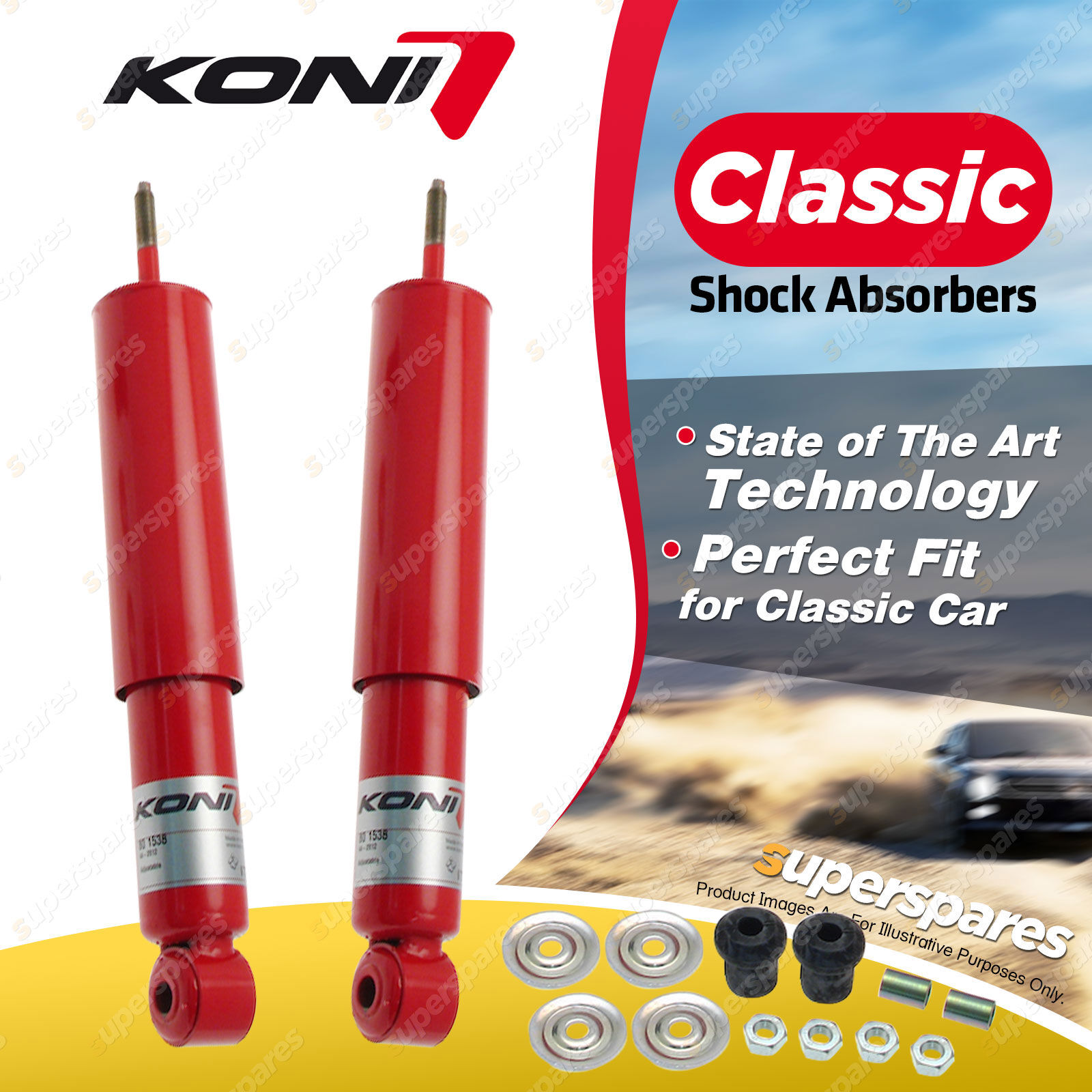 KONI Classic shock absorbers are developed using state of the art technology and are available for many older performance cars. |