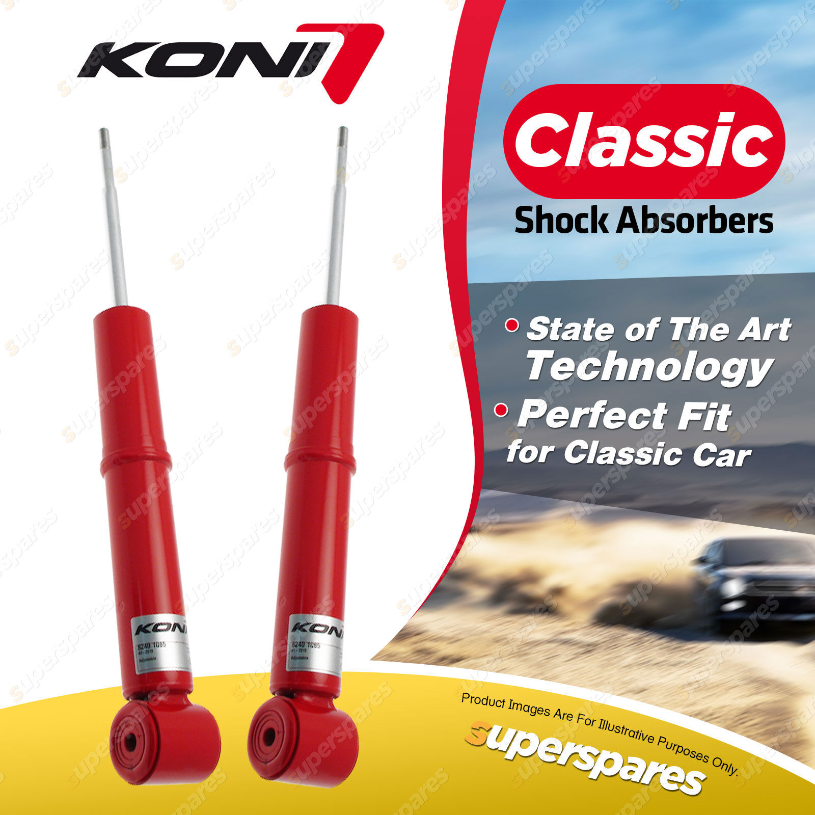 Contents: 2 x KONI Classic Adjustable Shock Absorbers Position: Front Part Number: 8240-1085 Suit: Porsche 928 S 79-93 |