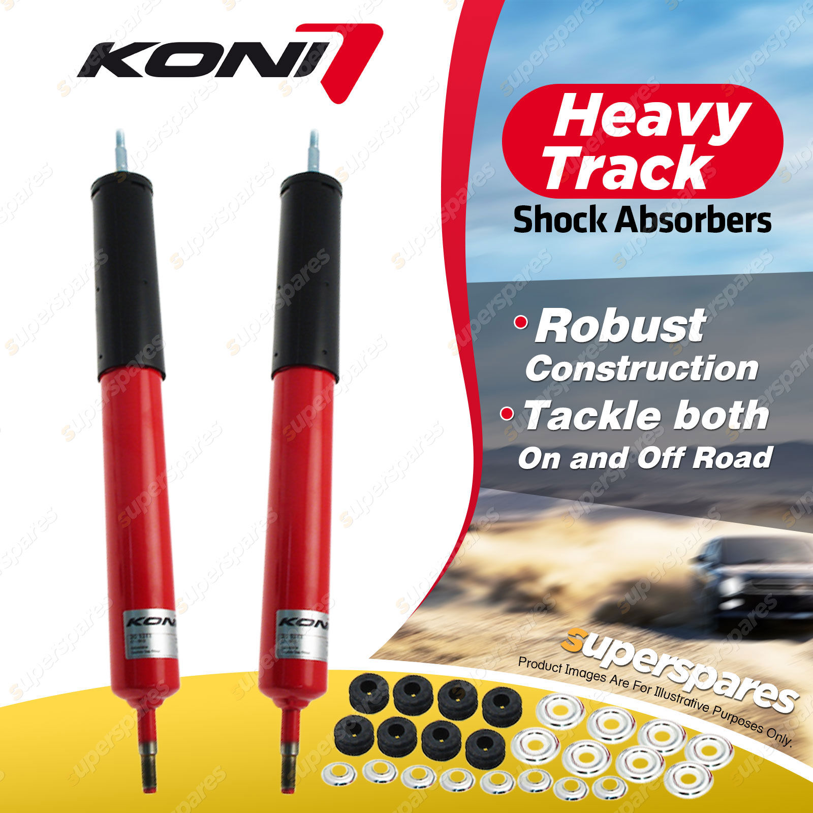KONI Heavy Track shocks are specially developed for the on-road and off-road challenges of pick-ups, 4x4s, and SUVs. |