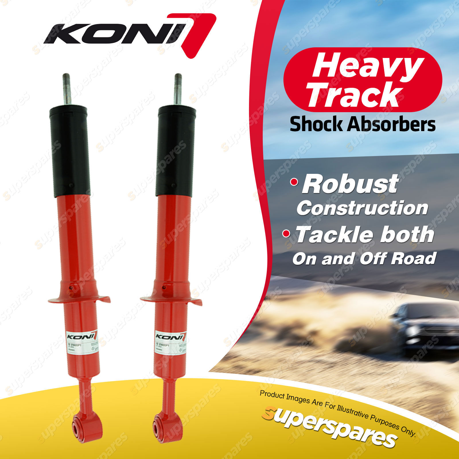 KONI Heavy Track shocks are specially developed for the on-road and off-road challenges of pick-ups, 4x4s, and SUVs. |