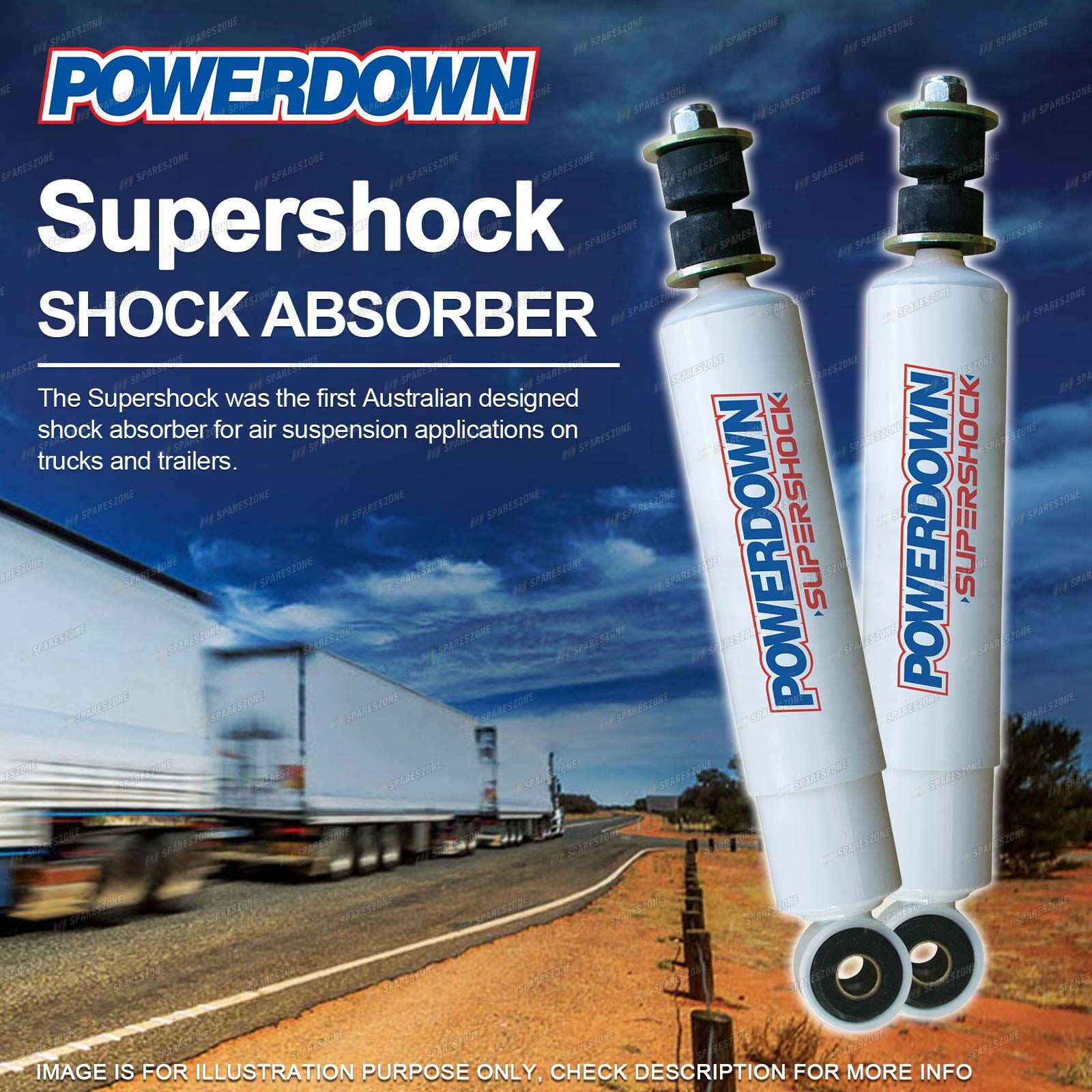 Description : Powerdown Front Shock Absorbers Quantity In Package : 2 Product Type : Supershock Vehicle Type : Truck Top Mounting : Pin/Stud Bottom Mounting : Sleeved Eye |