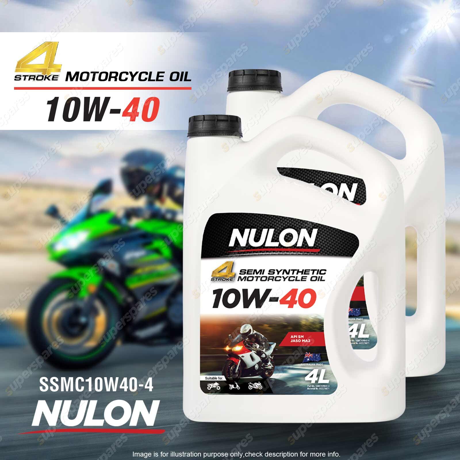 Contents: 2 x Nulon 4 Stroke 10W-40 Motorcycle Engine Oil 4L Part Number: SSMC10W40-4 |