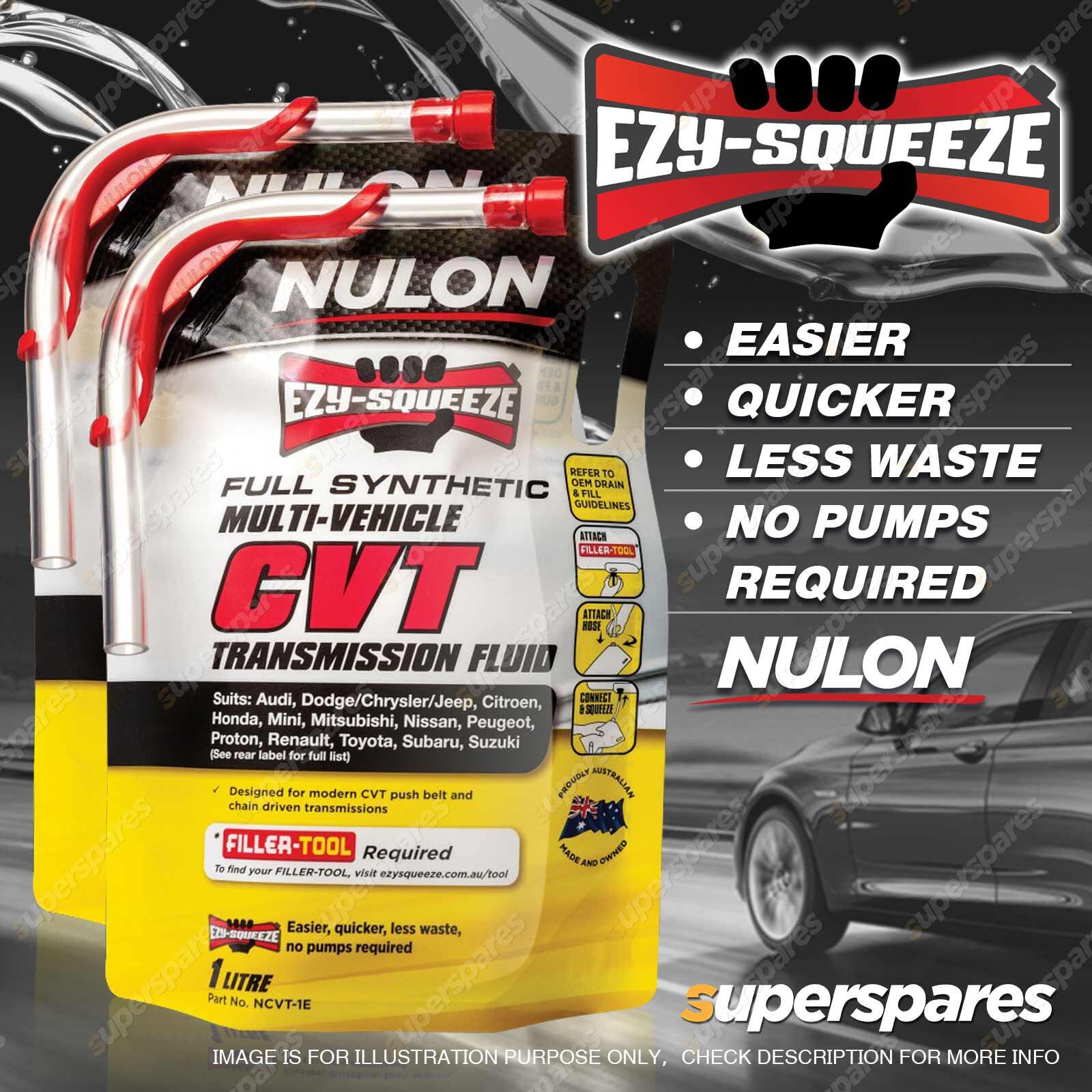 Contents : 2 x Nulon EZY-SQUEEZE Full Synthetic Multi-Vehicle CVT Transmission Fluid 1L