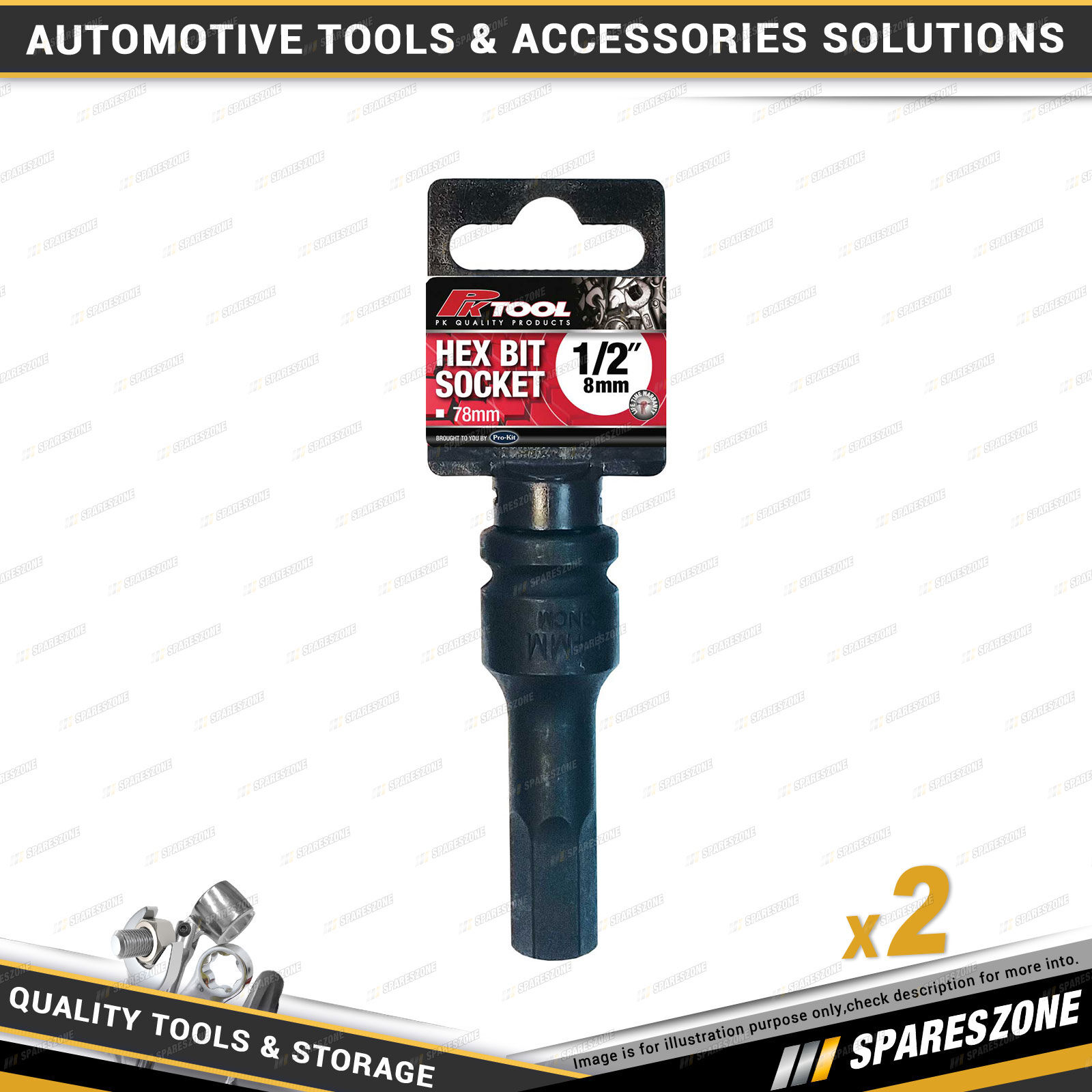 Contents : 2 x PK Tool 1/2 Inch Drive 8mm Impact Hex Bit Sockets