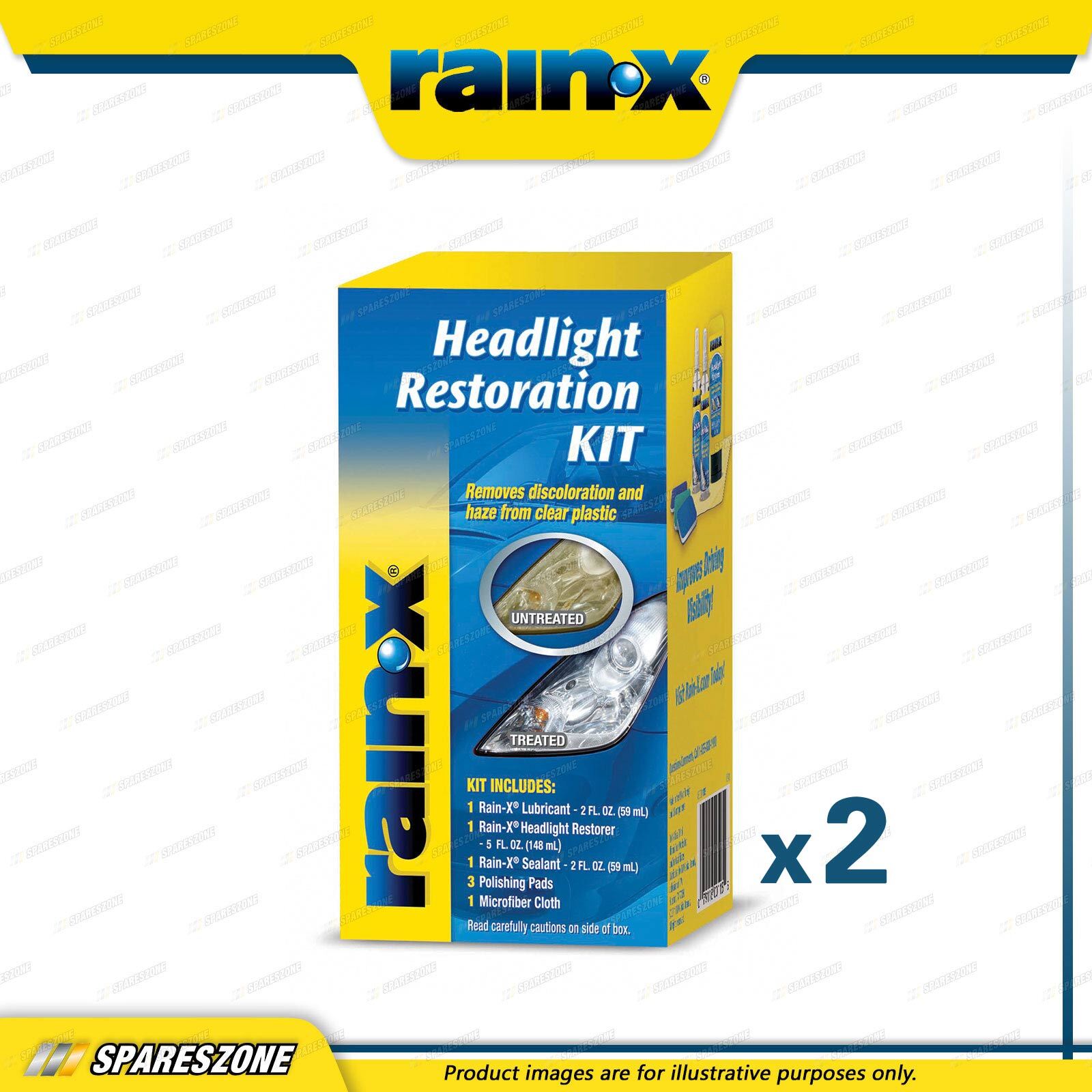 Contents : 2 x Rain-X Headlight Restoration Kits