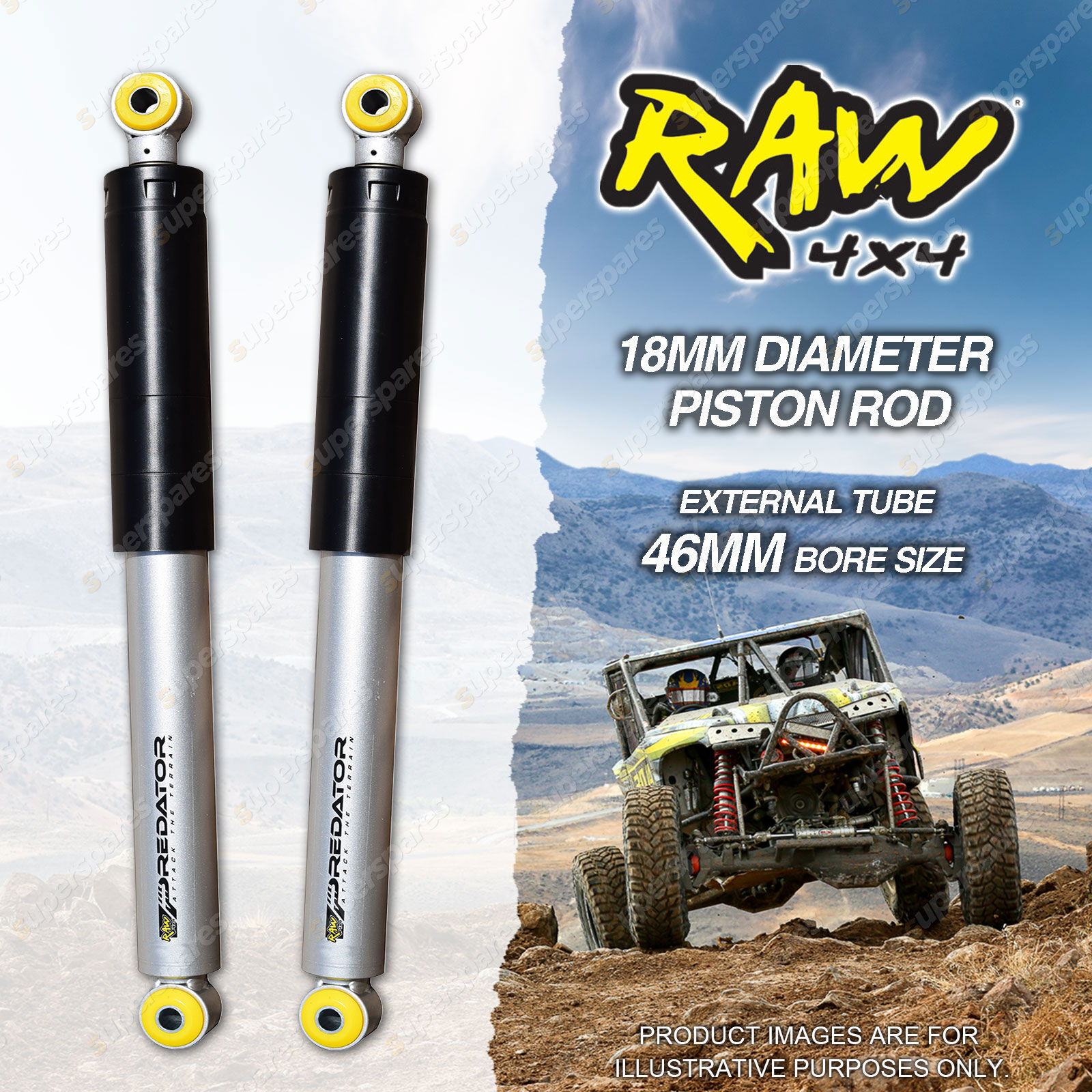 Pair Rear 50mm Lift RAW 4x4 Predator Shock Absorbers