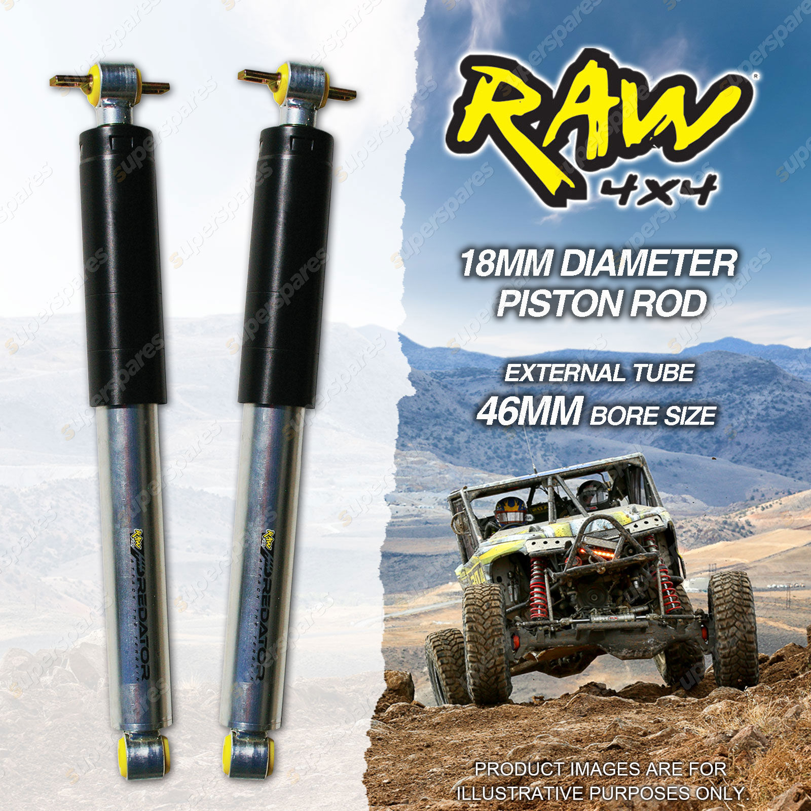 Pair Rear 50mm Lift RAW 4x4 Predator Shock Absorbers