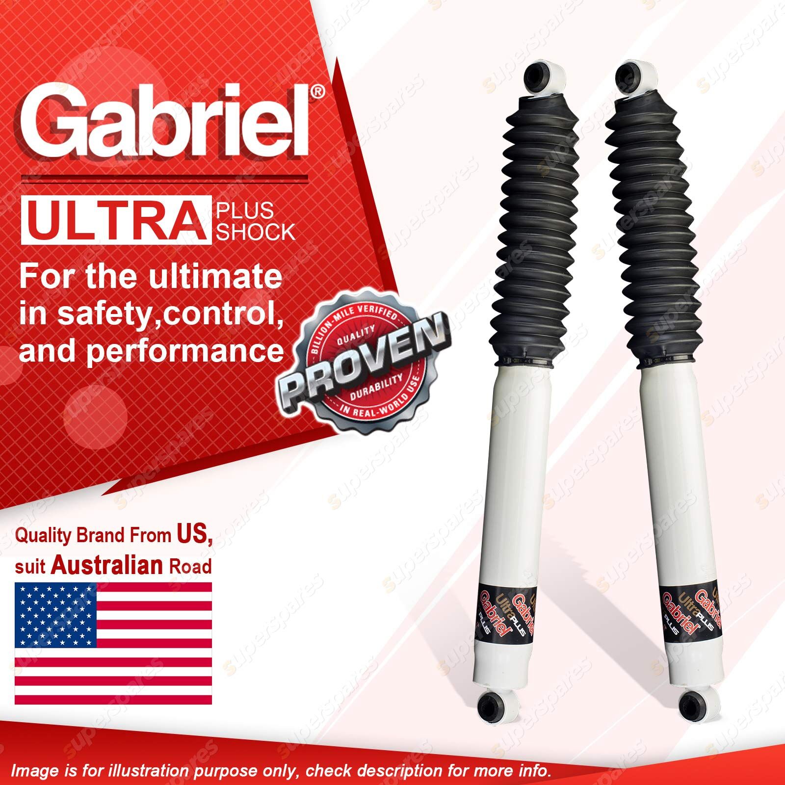 | Note: eBay's compatibility table is not accurate in some cases. Please refer to the following information we have provided for you. Copyright © 2014 - 2023 Superspares. All rights reserved. Contents : 2 x Rear Gabriel Ultra PLUS Shock Absorbers - Gas Warranty : 3 Years Suit : Isuzu D-MAX TF RWD with torsion bar front suspension 10/08 - 5/12 Notes : 45mm Raised Isuzu D-MAX TF 4WD with torsion bar front suspension 10/08 - 5/12 Notes : 50mm Raised |