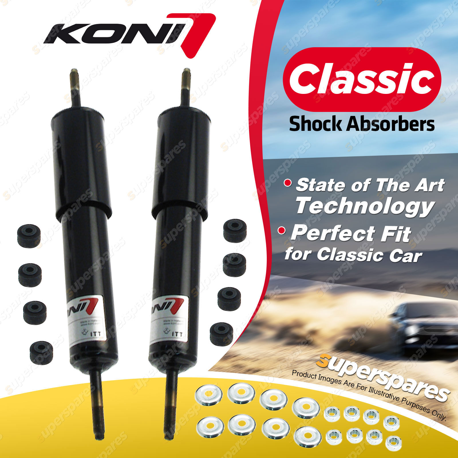 KONI Classic shock absorbers are developed using state of the art technology and are available for many older performance cars. |