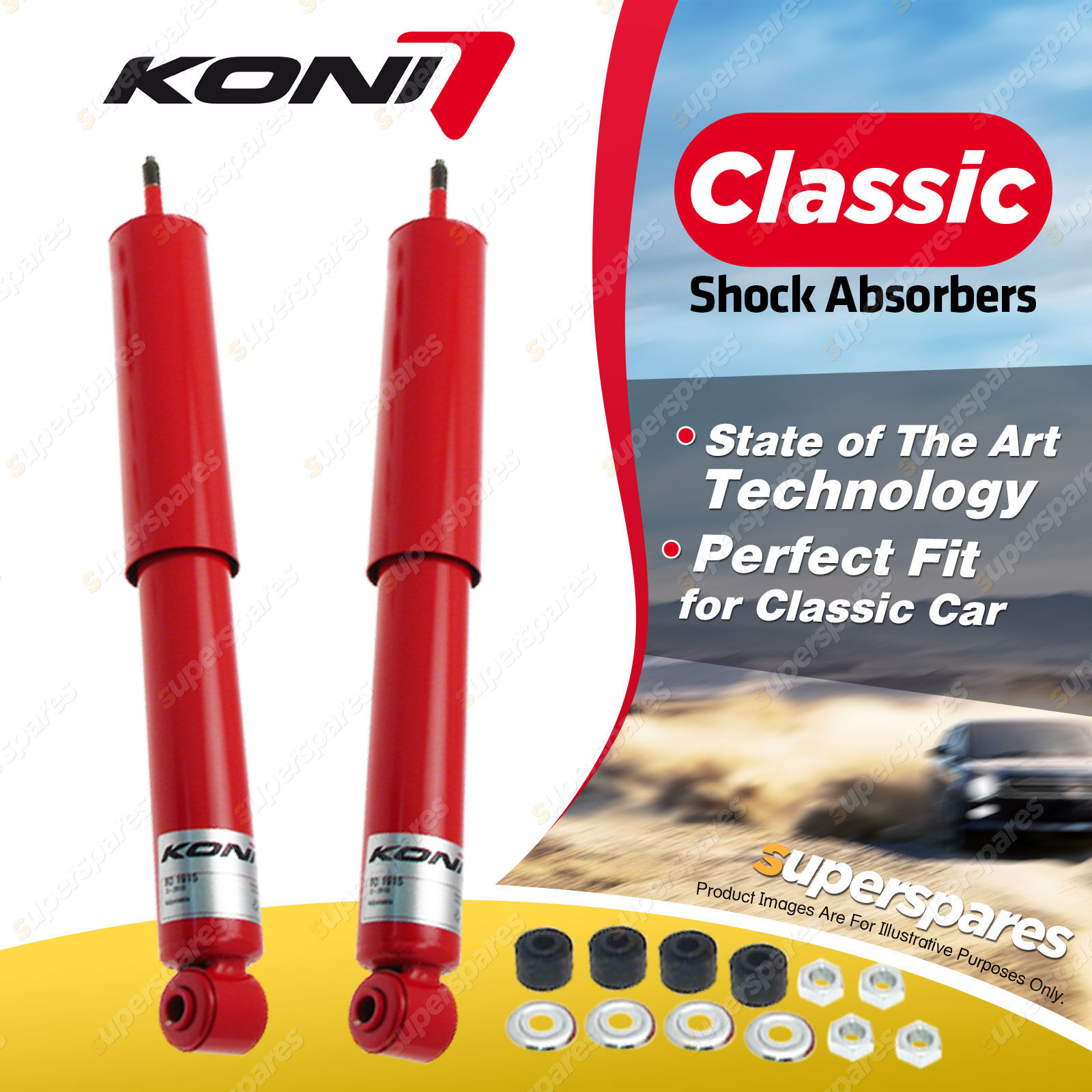 KONI Classic shock absorbers are developed using state of the art technology and are available for many older performance cars. |
